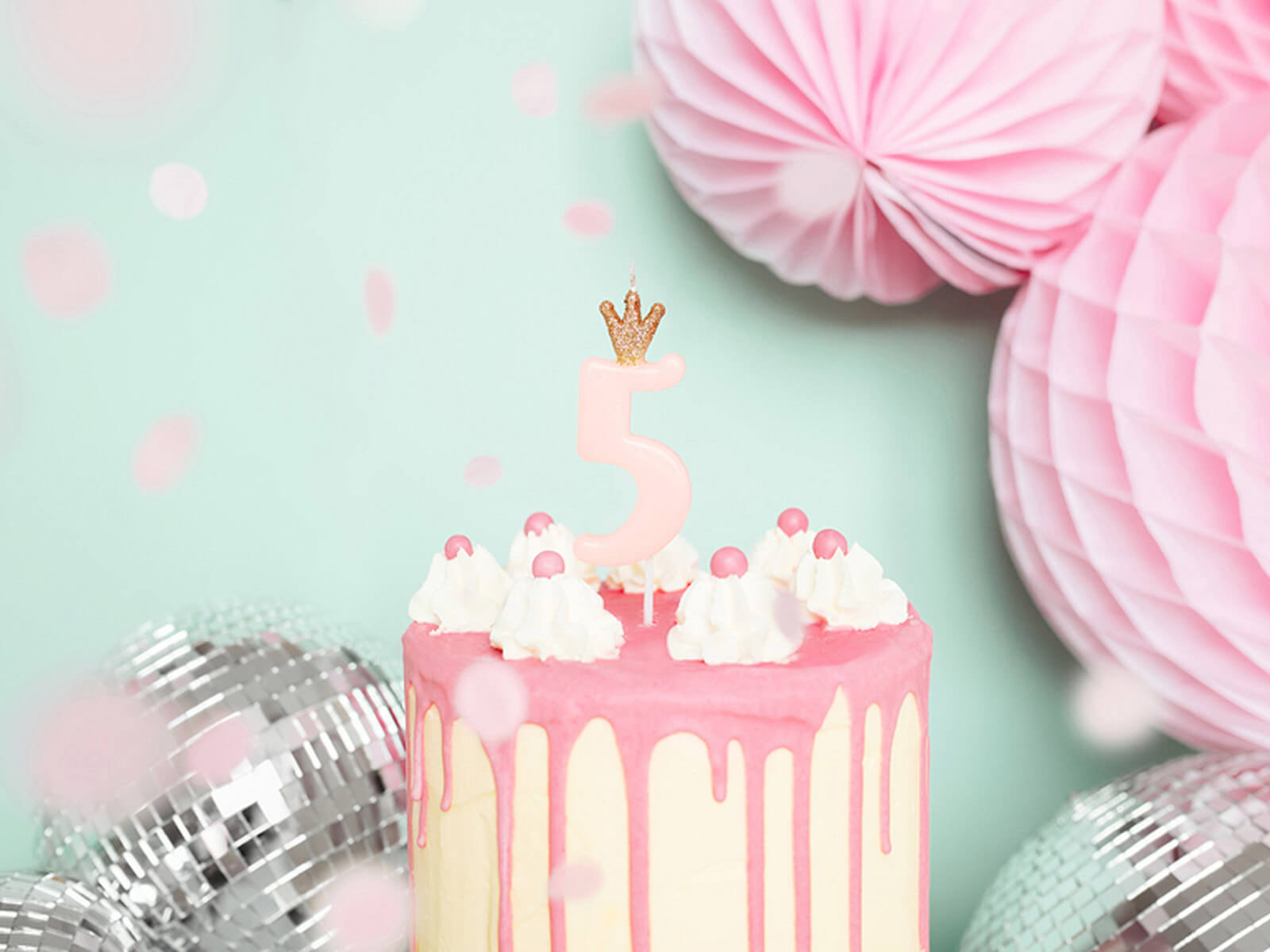 Świeczka cyferka pięć jasnoróżowa z koroną - 5 - 1 szt.