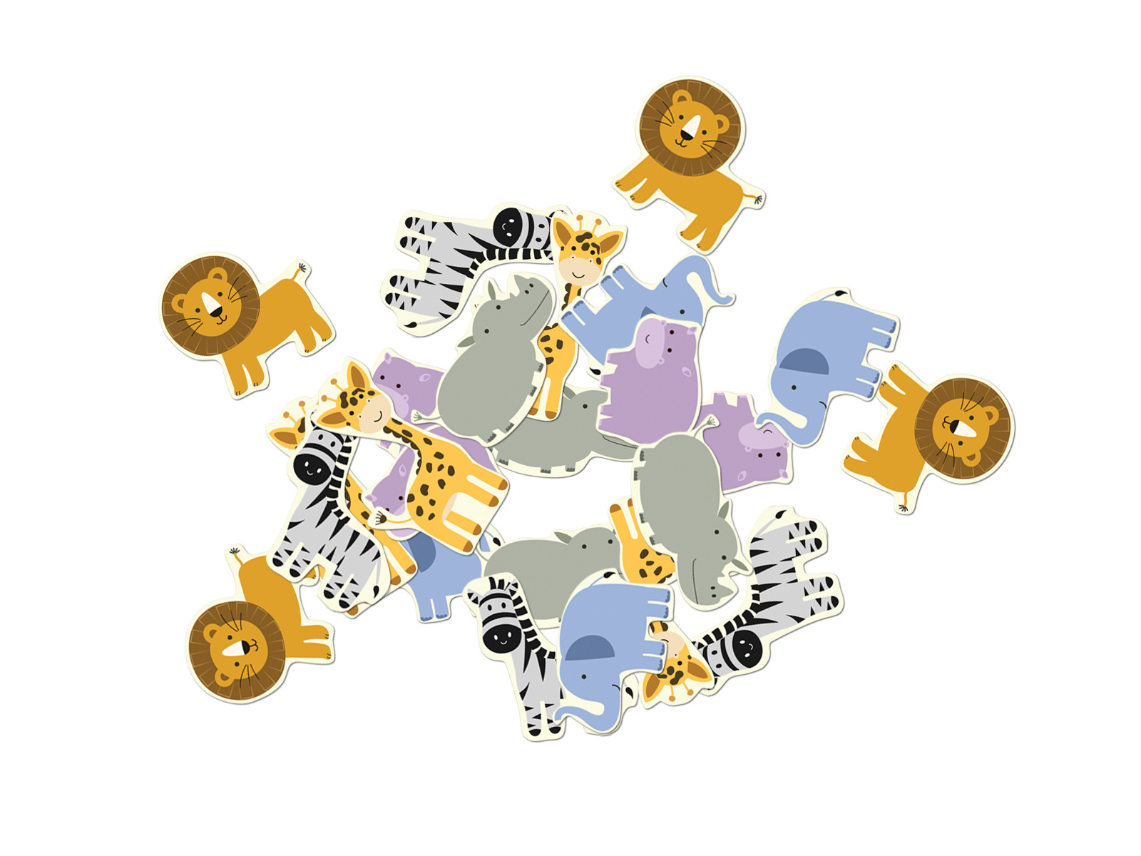 Dodaj trochę dzikiej przygody do swojego przyjęcia urodzinowego dzięki urodzinowemu konfetti Safari! Te papierowe kształty ukochanych zwierząt z safari będą idealnym dodatkiem do każdej uroczystości. W zestawie 54 sztuk znajdziesz wycinanki lwa, słonia, żyrafy, zebry, nosorożca, hipopotama i krokodyla o wymiarach od 4 do 6 cm. Ten zestaw safari z pewnością nada każdemu przyjęciu urodzinowemu egzotyczną i dramatyczną atmosferę. Od dekoracji stołów, poprzez rozsypanie na podłogach, aż po dodanie specjalnego akcentu do prezentów dla gości - urodzinowe konfetti Safari pomoże uczynić wielki dzień Twojego dziecka niezapomnianym! Dodaj odrobinę fantazji i radości dzięki konfetti urodzinowemu Safari i pozwól, by rozpoczęło się świętowanie!