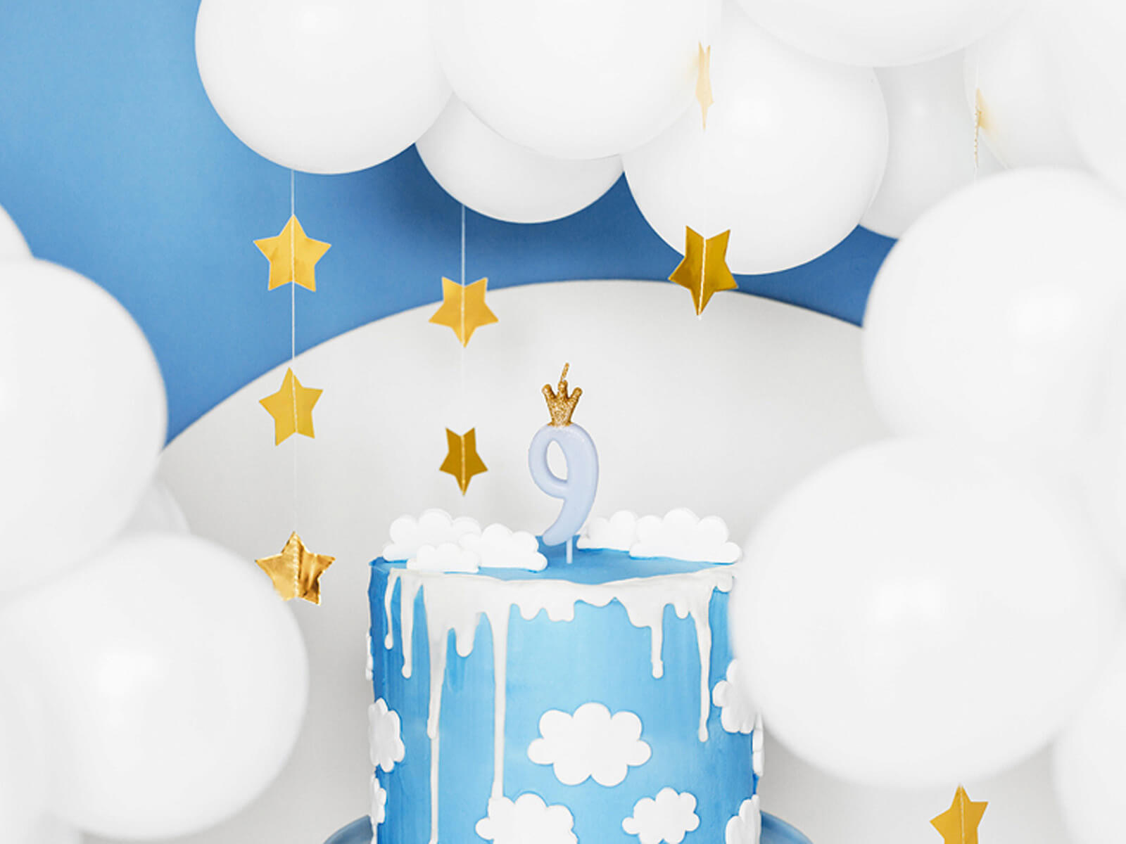 Świeczka cyferka dziewięć błękitna z koroną - 9 - 1 szt.