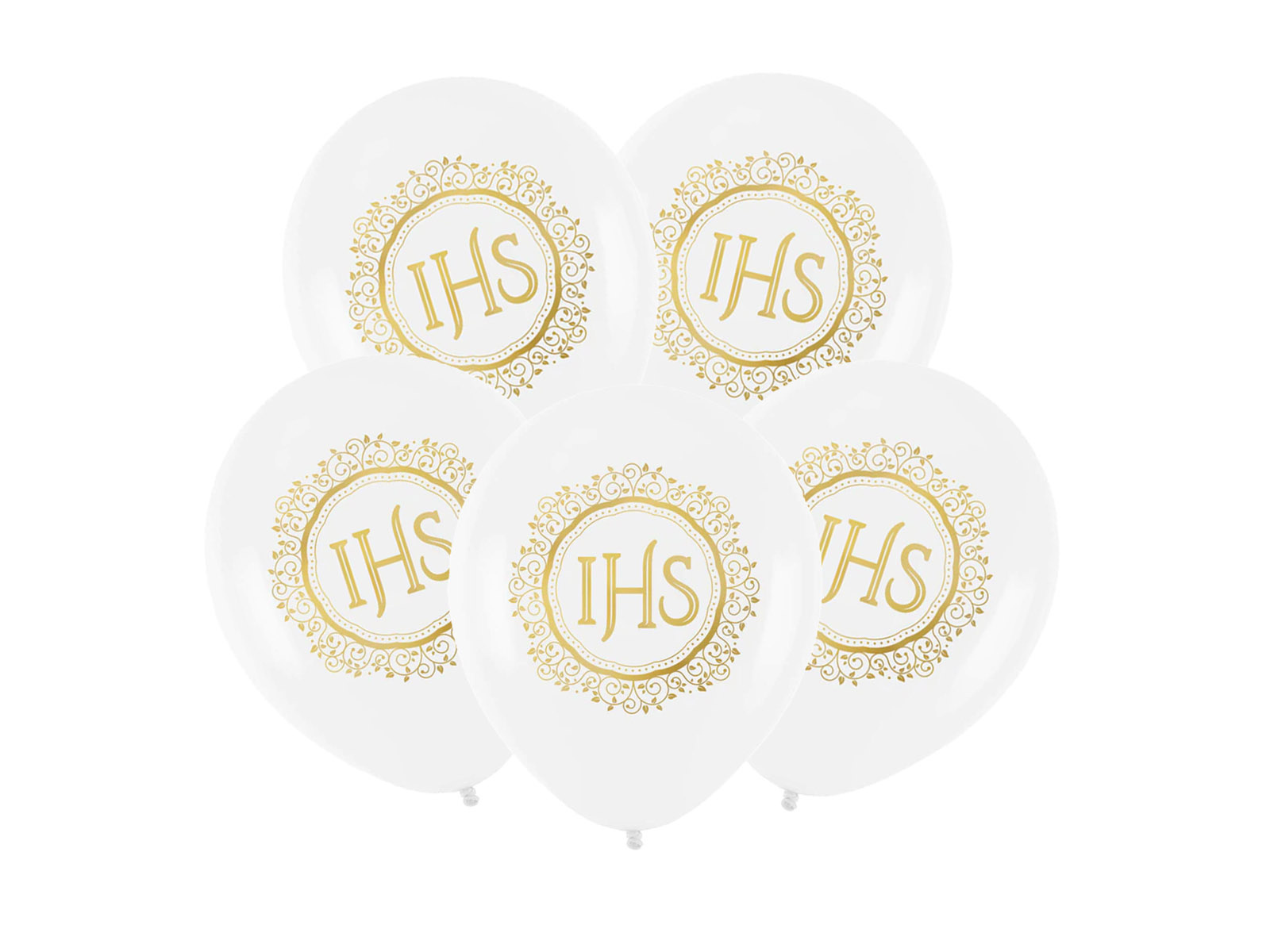 Balony lateksowe IHS ze złotym ornamentem - 30 cm - 5 szt.