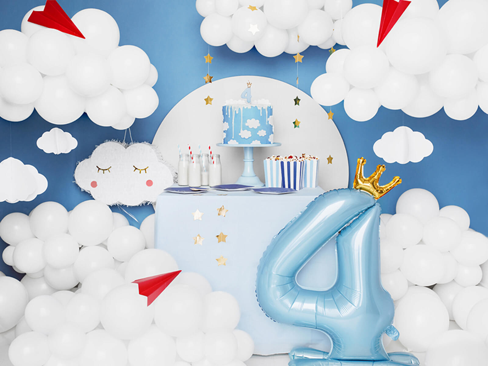 Balon foliowy stojący cyfra 4 błękitna z koroną - 84 cm - 1 szt.