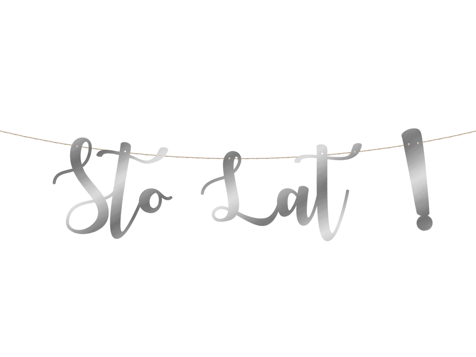 Baner z napisem Sto Lat! srebrny - 65 cm - 1 szt.