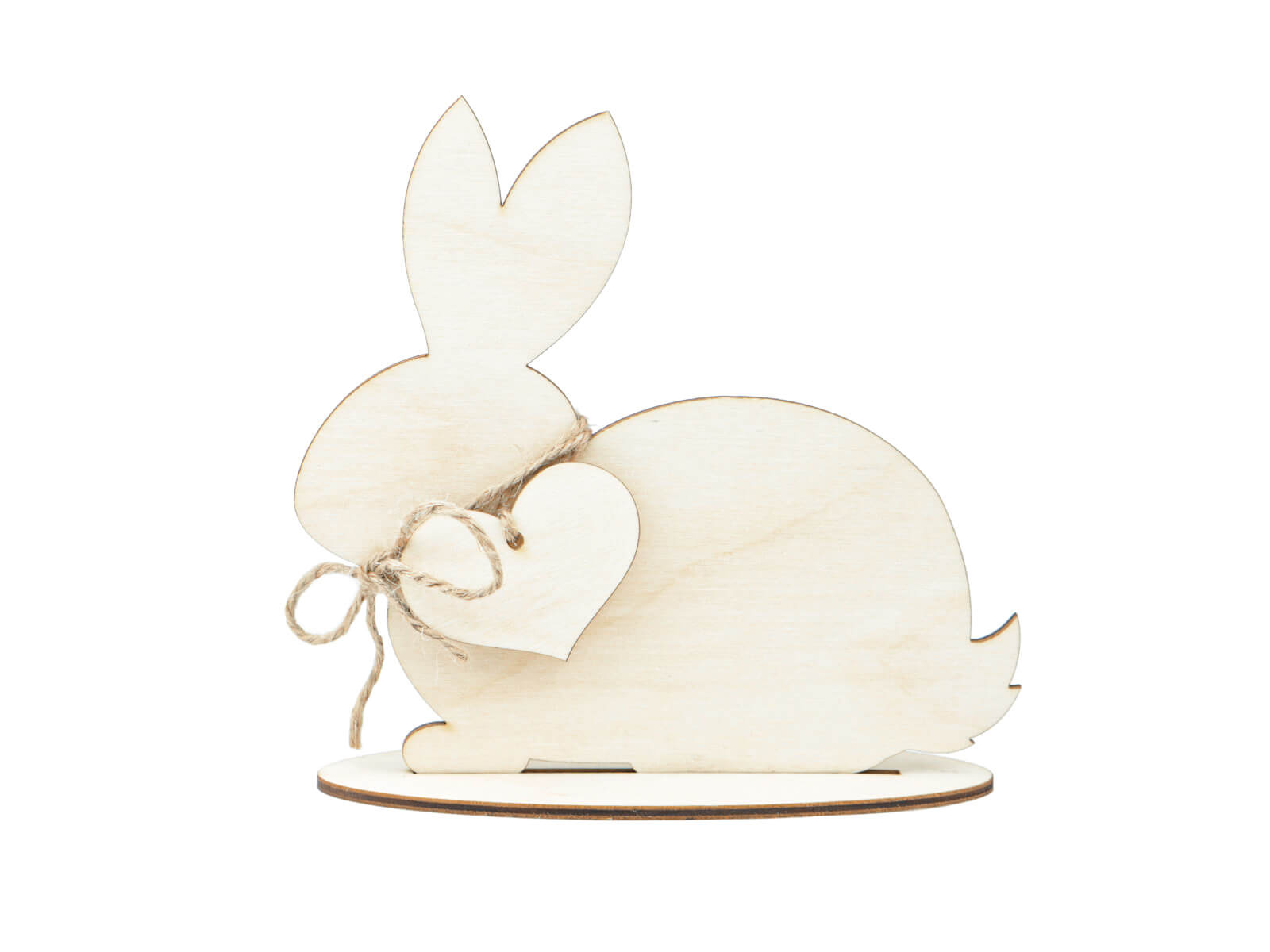 Oto najsłodszy wielkanocny wystrój domu, jaki kiedykolwiek ujrzysz! Nasza drewniana dekoracja stojąca Zając wniesie radosny nastrój i mnóstwo miłości do twoich wielkanocnych uroczystości. Wykonana z drewnianej sklejki, przedstawia najsłodszego zająca z dodatkowym drewnianym sercem przymocowanym do jutowego sznurka.