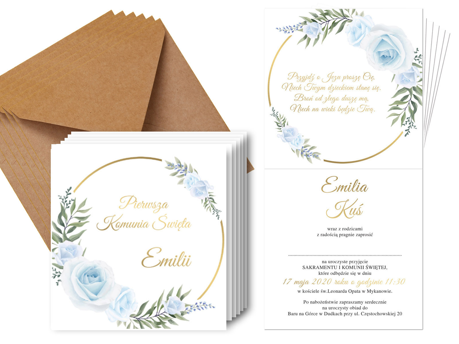 Zaproszenia personalizowane na I Komunię Świętą - 6 szt.
