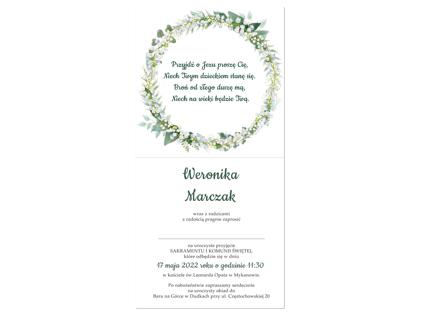 Zaproszenia personalizowane na I Komunię Świętą - 6 szt.