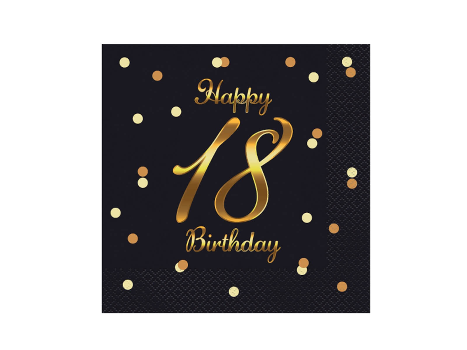 Nasze serwetki Happy 18 Birthday są stylowe - zapewniają dodatkowy blask, który z pewnością zachwyci Twoich gości!