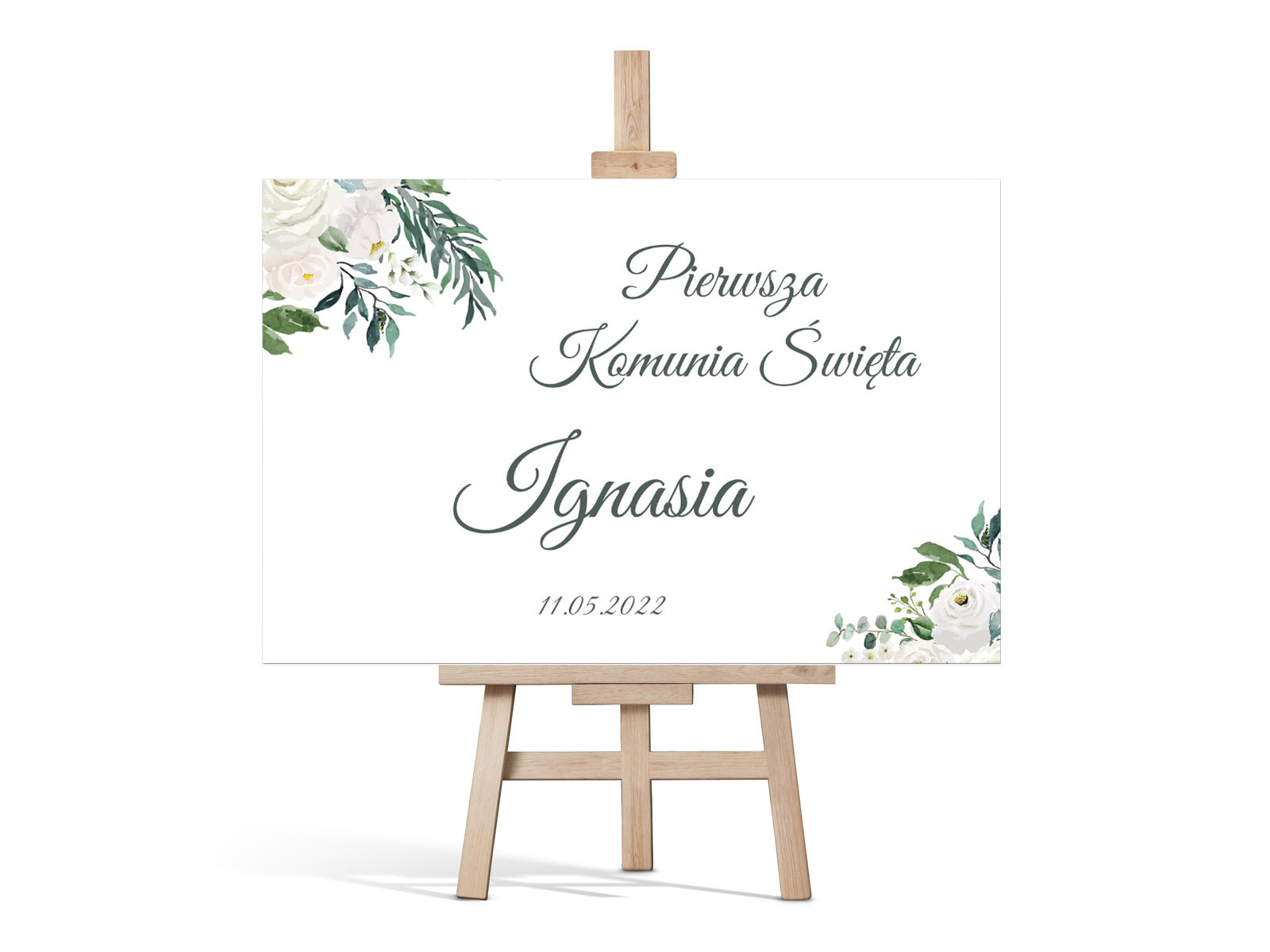 • Duży papierowy plakat jednostronny personalizowany na I Komunię Świętą.