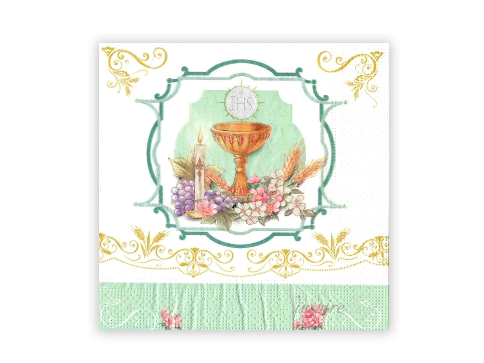 Serwetki komunijne z kielichem IHS - 33 cm - 20 szt.