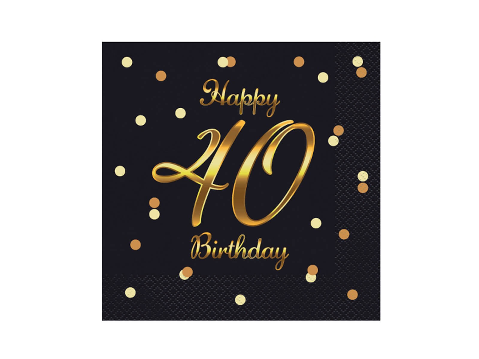 Serwetki na czterdzieste urodziny czarne - 33 cm - 20 szt.