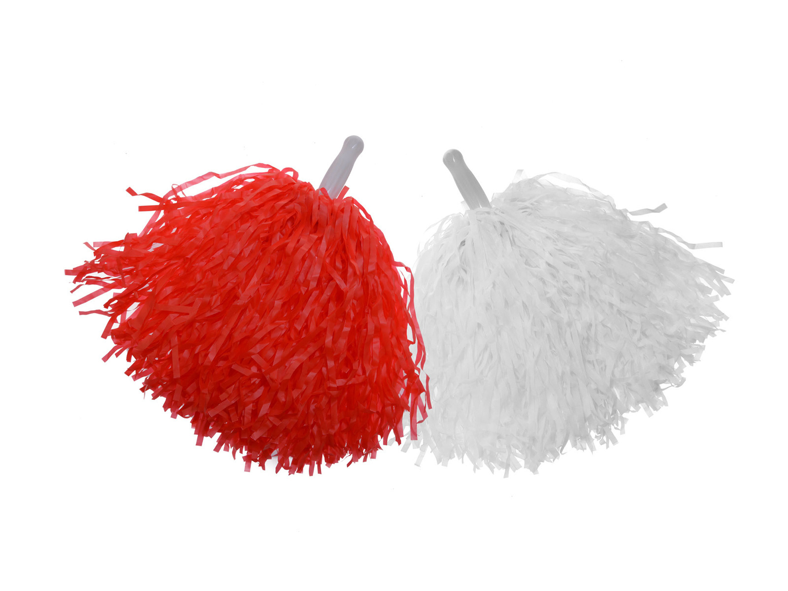 Pompony cheerleaderki biało-czerwone - 2 szt.