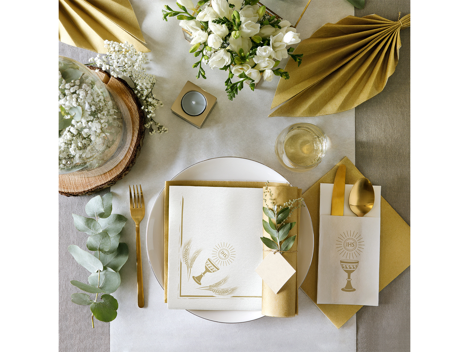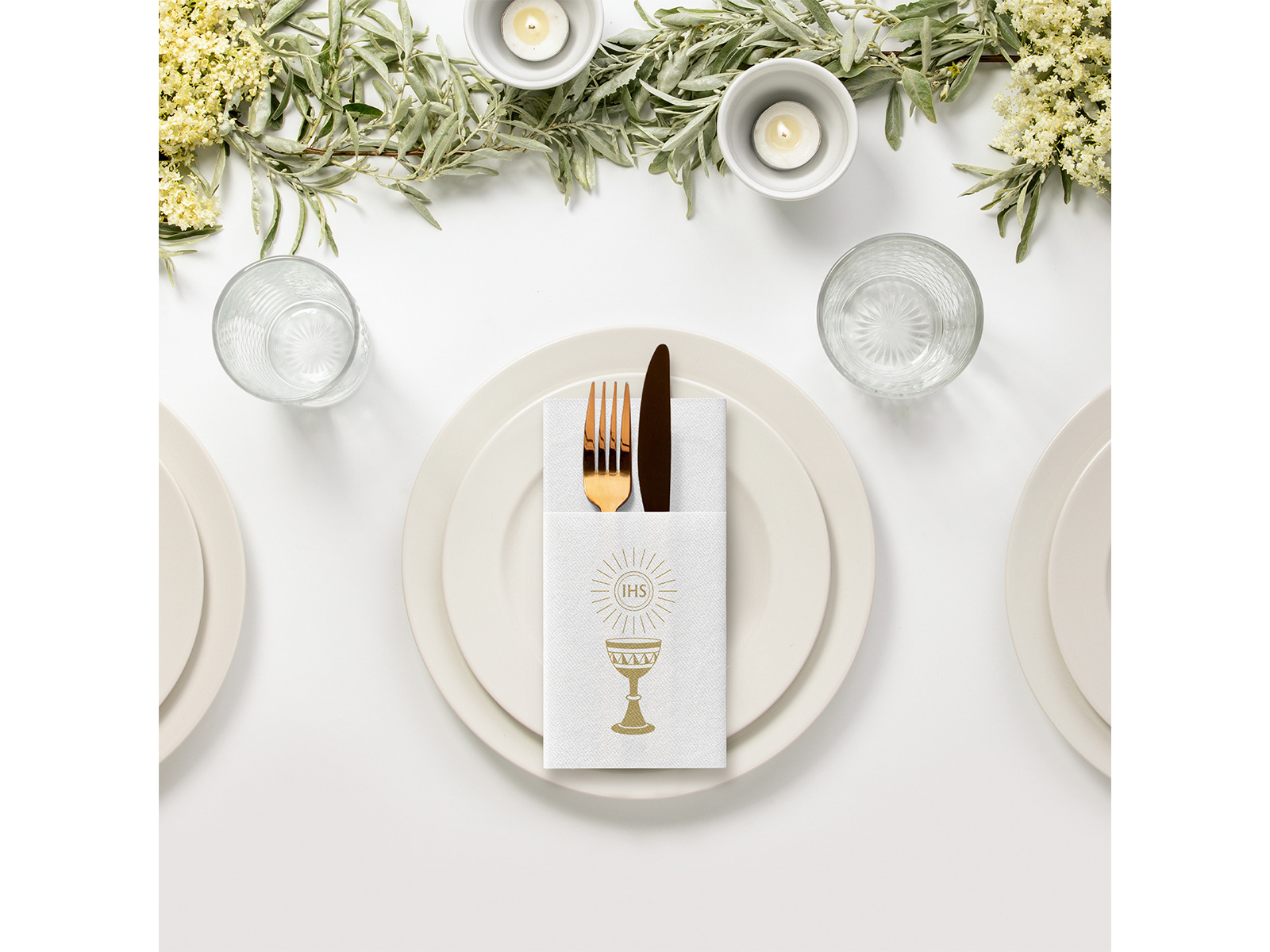 Serwetniki te dodadzą elegancji Twojej zastawie stołowej, a jednocześnie będą miały sentymentalny związek z tym wspaniałym wydarzeniem. Patrz z oczami pełnymi dumy, jak członek twojej rodziny świętuje swoją Pierwszą Komunię Świętą w religijnym splendorze.