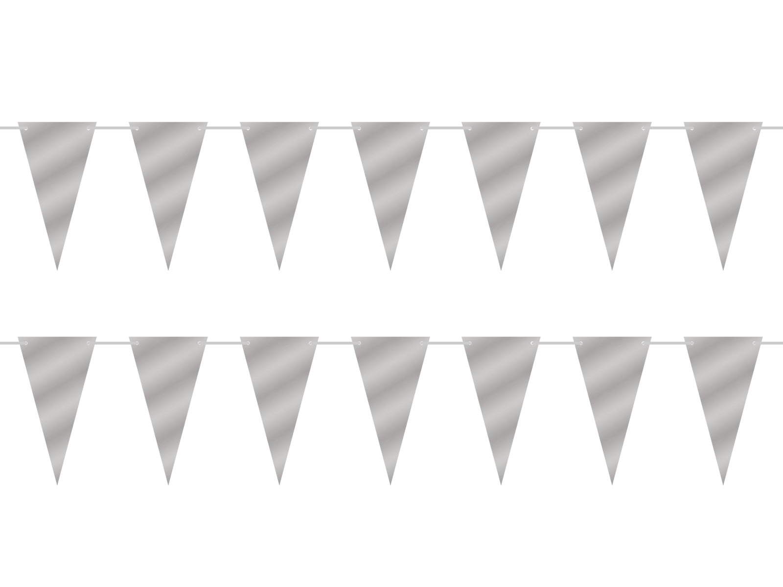 Przenieś blask srebrnego wykończenia na Twoje przyjęcie z naszą girlandą flagietek! Ten zestaw zawiera 14 flag w metalizowanym, srebrnym kolorze, które pięknie odbijają światło, dodając magicznego odświętnego nastroju. Każda flaga mierzy 7 x 13 cm, co jest idealne do dekoracji zarówno mniejszych, jak i większych przestrzeni.