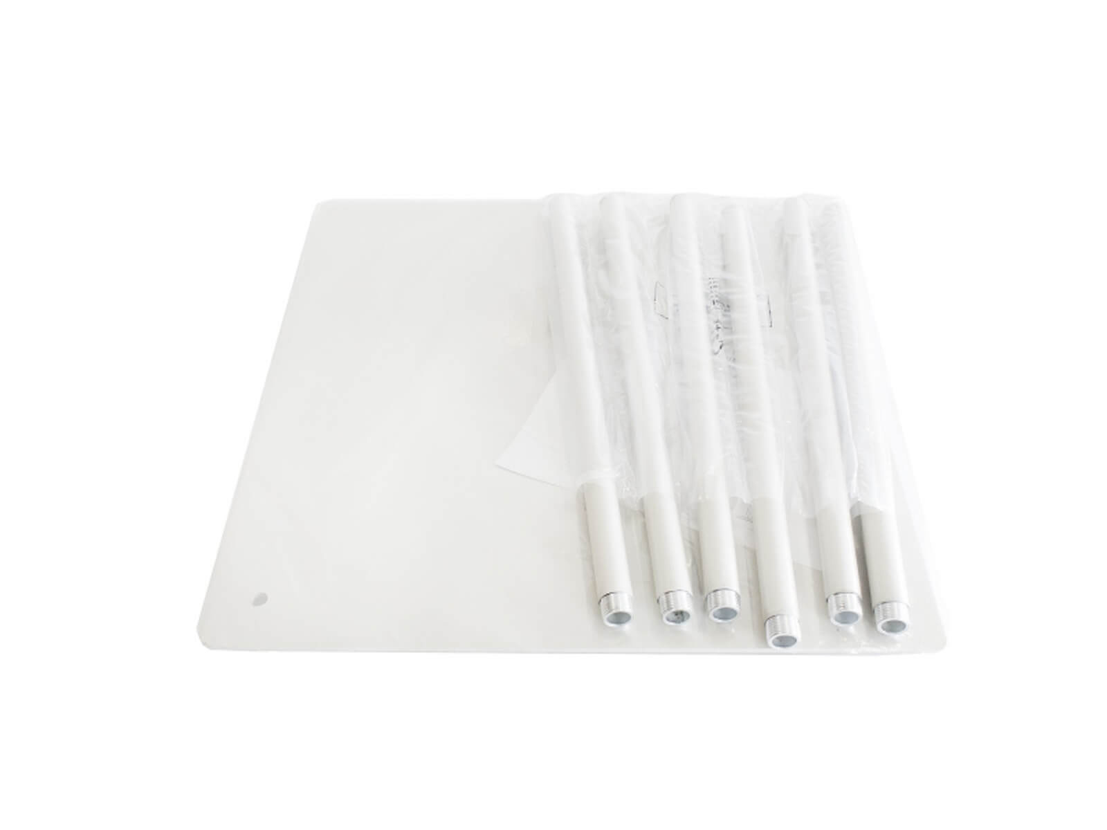 - Zestaw składa się z podstawy oraz 6 elementów z gwintem zewnętrznym i wewnętrznym, co zapewnia łatwą obsługę oraz stabilność konstrukcji.