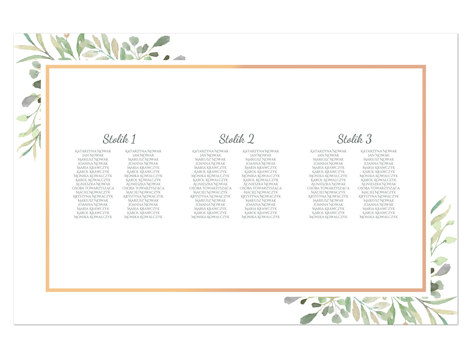 • Duży papierowy plakat personalizowany z planem stołów weselnych.