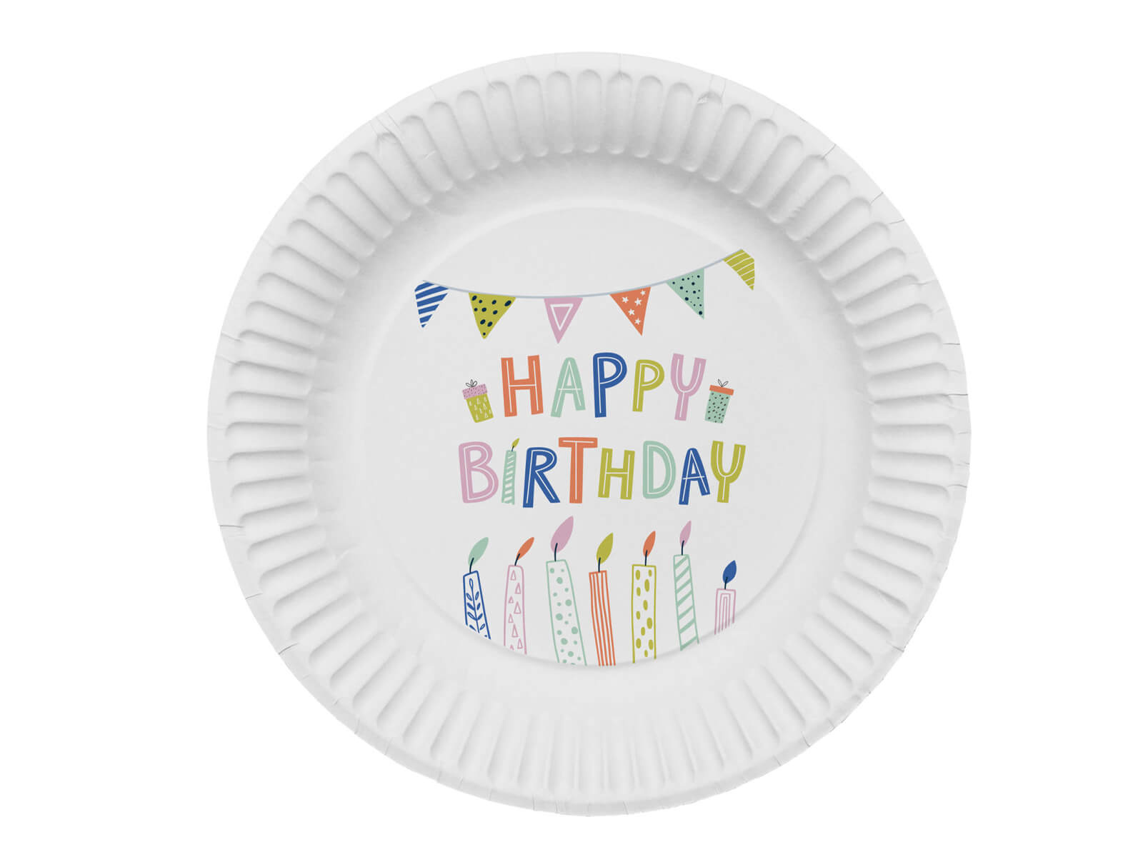 Talerzyki papierowe urodzinowe Happy Birthday - 23 cm - 8 szt.