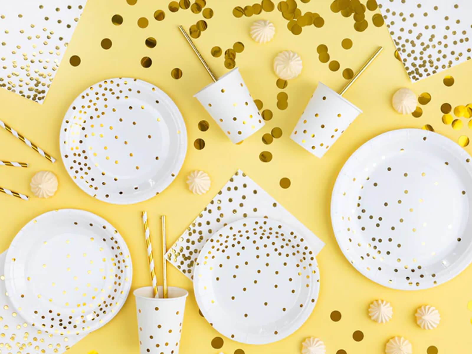 Odśwież każde przyjęcie urodzinowe dzięki tym papierowym talerzykom w kolorze białym ze złotymi kropkami! Bez względu na wiek Twojego dziecka, te eleganckie talerzyki sprawią, że jego urodziny będą wyjątkowe. Mają średnicę 18 cm i są dostępne w opakowaniach po 6 sztuk, więc z łatwością podasz gościom pyszny kawałek tortu. Ponadto są wykonane z papieru, więc nie musisz się martwić o naczynia po zakończeniu uroczystości! A jeśli tak bardzo Ci się spodobają, dlaczego nie kupić kolejnego opakowania na kolejne przyjęcia? Te eleganckie małe talerzyki z pewnością będą hitem podczas urodzin każdego dziecka... i nie tylko!