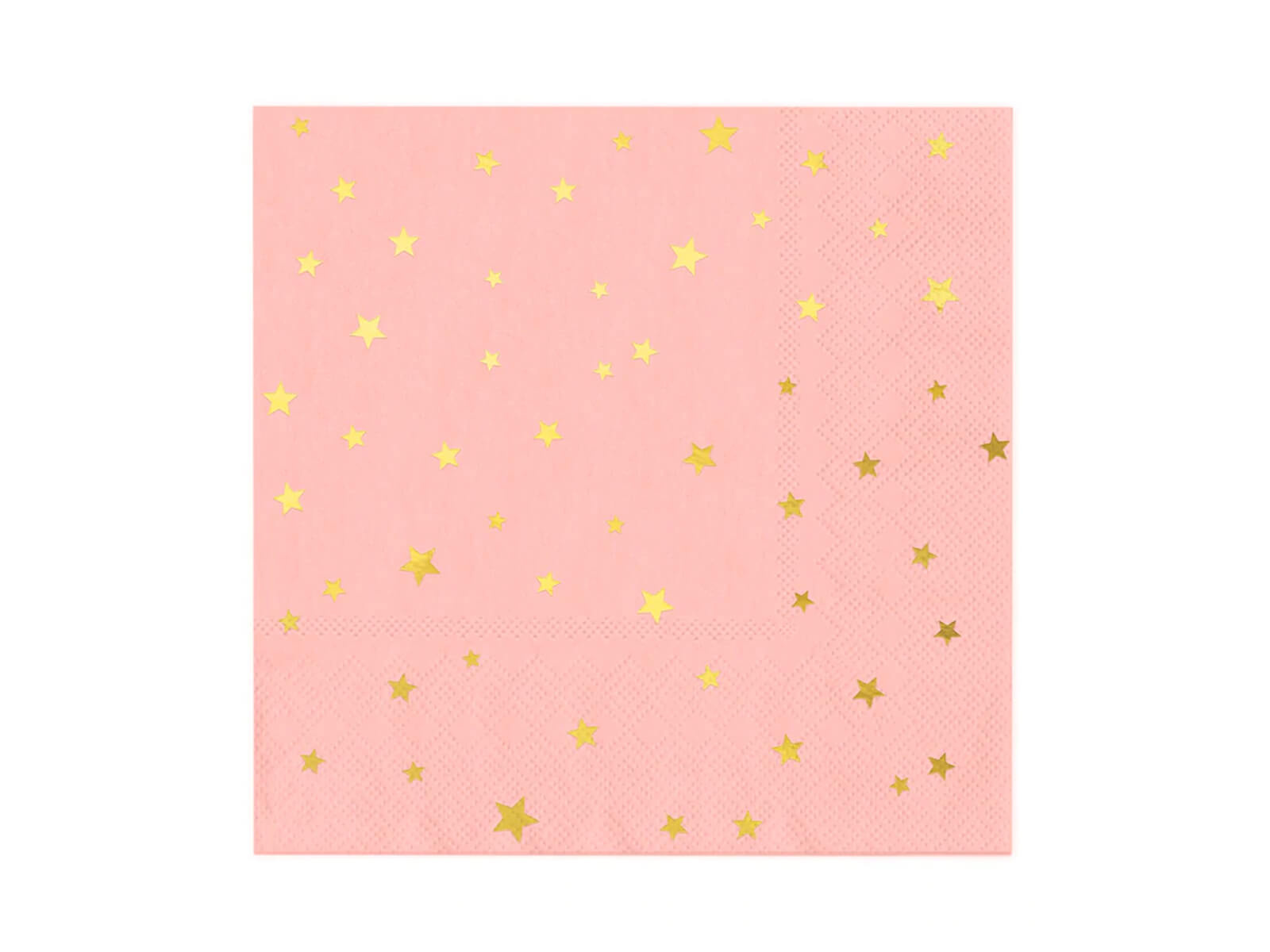 Serwetki różowe w złote gwiazdki - 33 cm - 10 szt.