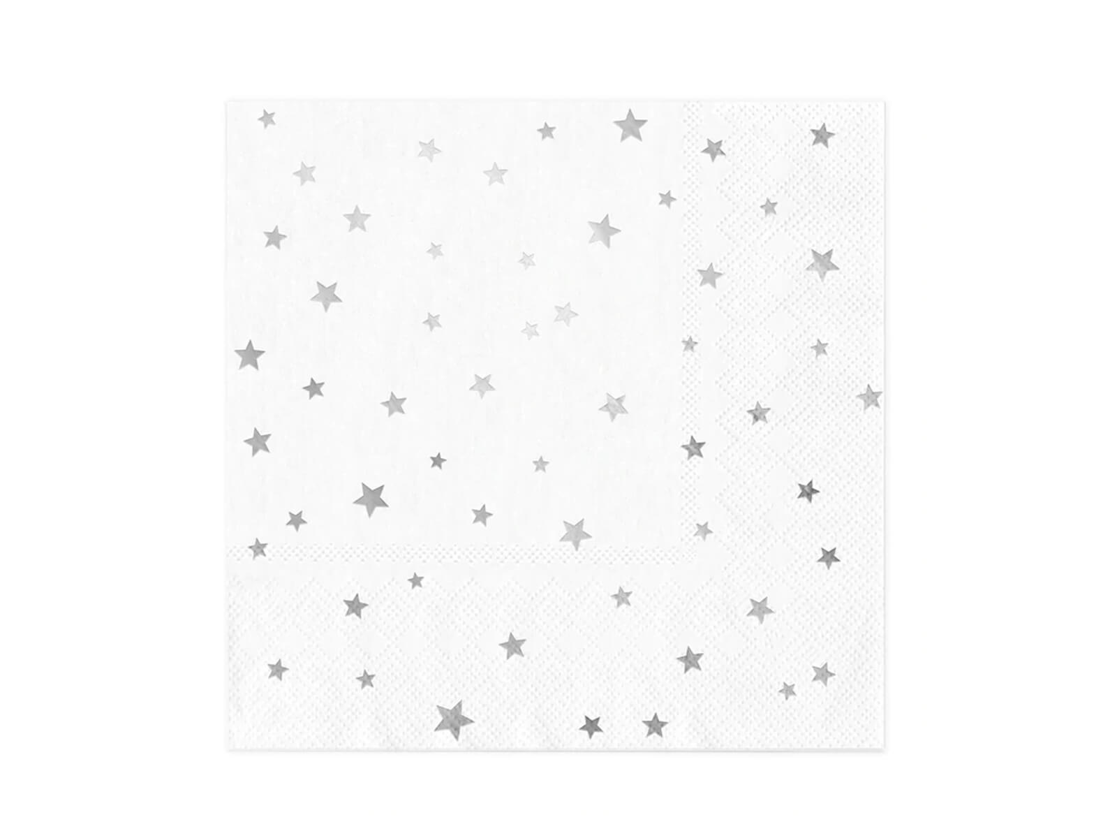Serwetki białe w srebrne gwiazdki - 33 cm - 10 szt.