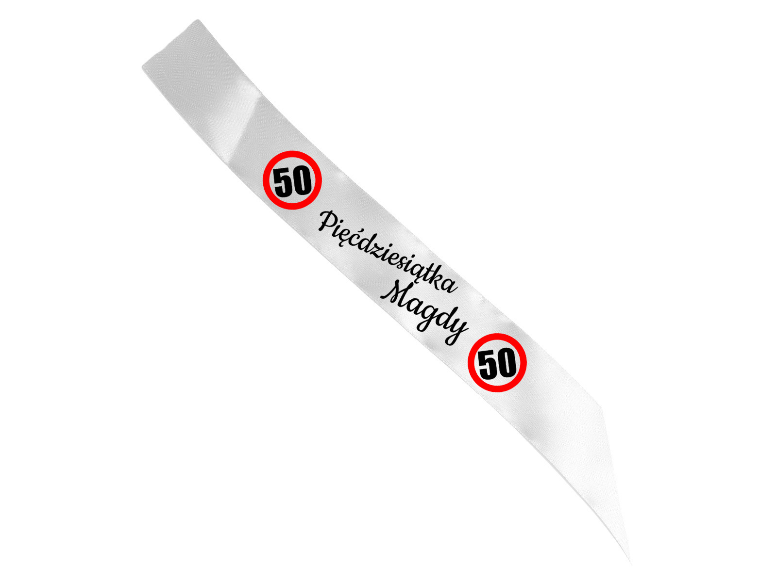 Szarfa personalizowana z imieniem na 50 urodziny - 140 cm - 1 szt.