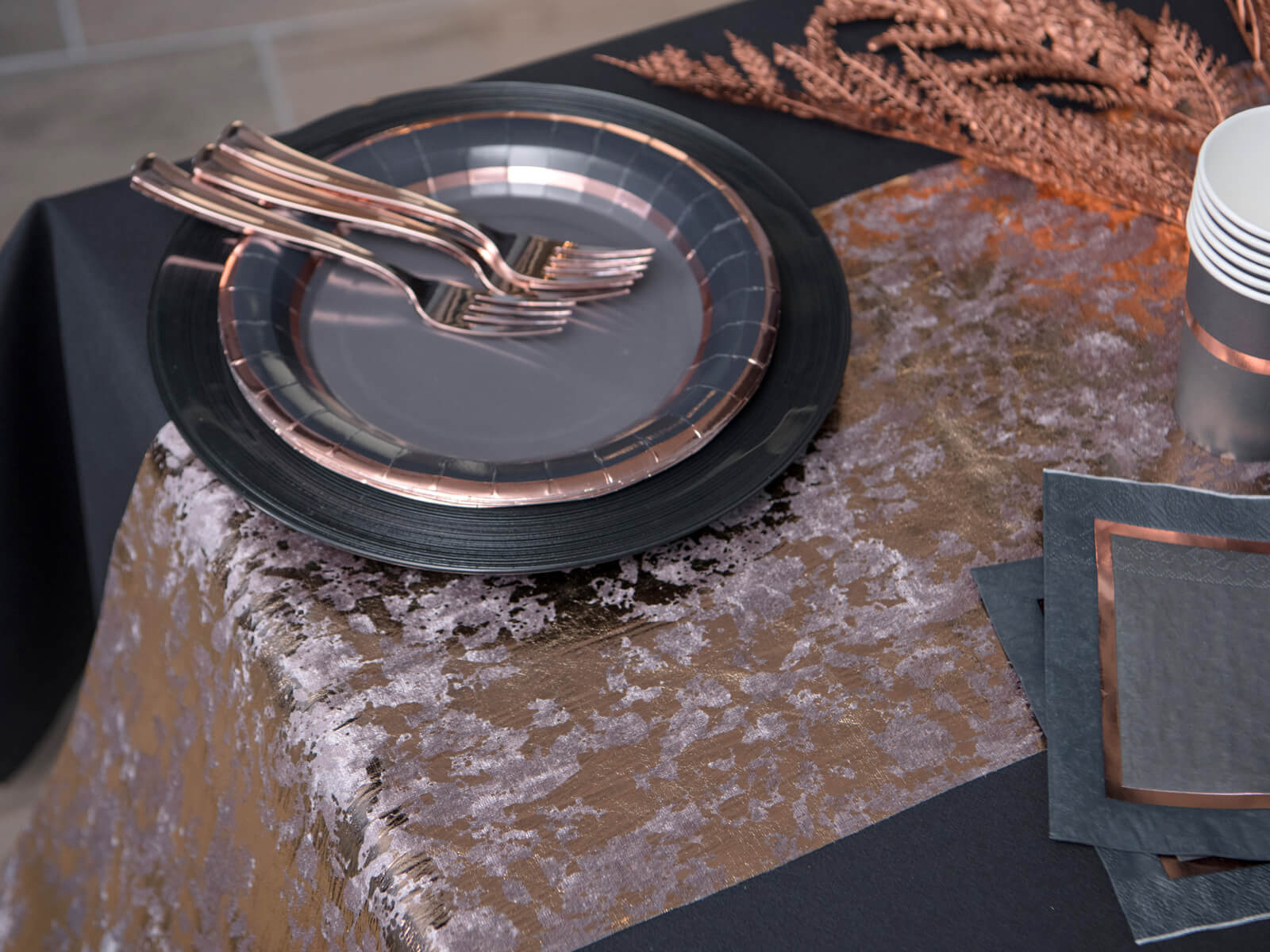 Dekoracja bieżnik metalizowany na stół - różowe złoto - 28 cm x 2,5 m - 1 szt.