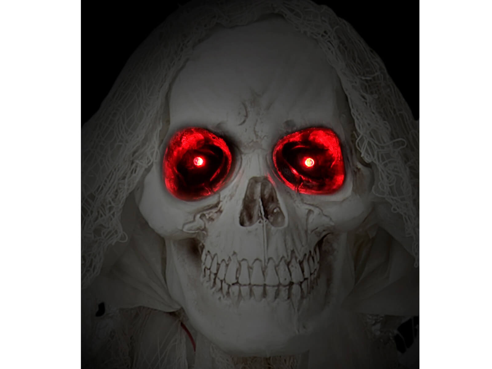 Posiada czujniki dźwięku, czyli np. po klaśnięciu uruchamiają się efekty świetlne - migające czerwone oczy oraz efekty dźwiękowe - złowieszczy śmiech.