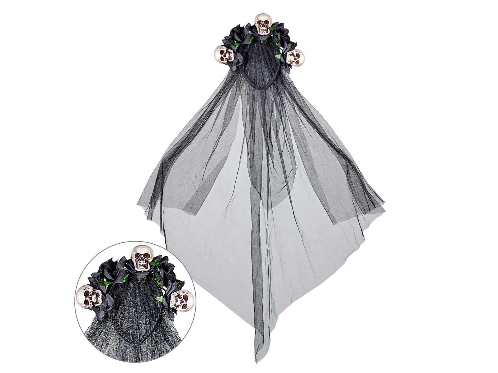 Nadchodzi Halloween i szukasz oryginalnego dodatku do swojego stroju? Prezentujemy wyjątkową opaskę z czachami i różami, której główną atrakcją jest efektowny, czarny welon. Ten unikatowy dodatek przyciąga uwagę i dodaje tajemniczości każdemu przebraniu.