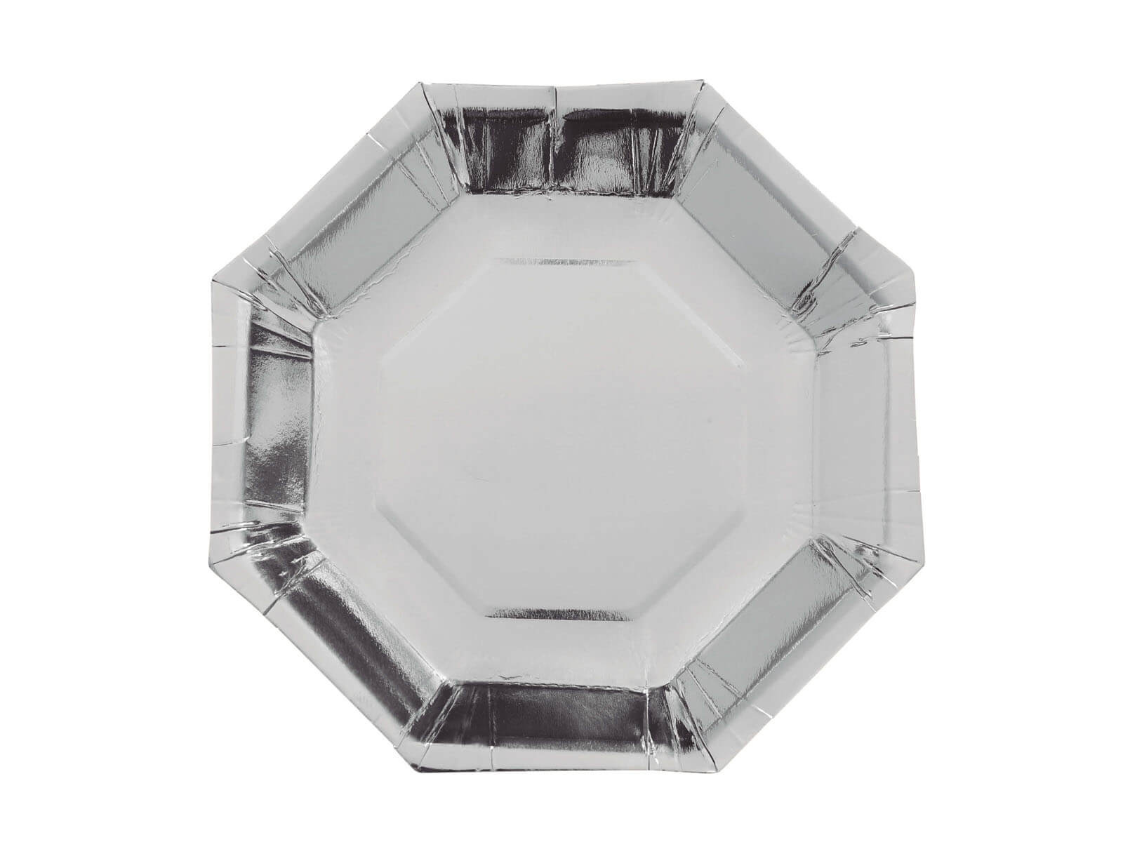 Talerzyki papierowe Oktagon srebrne - 23 cm - 6 szt.