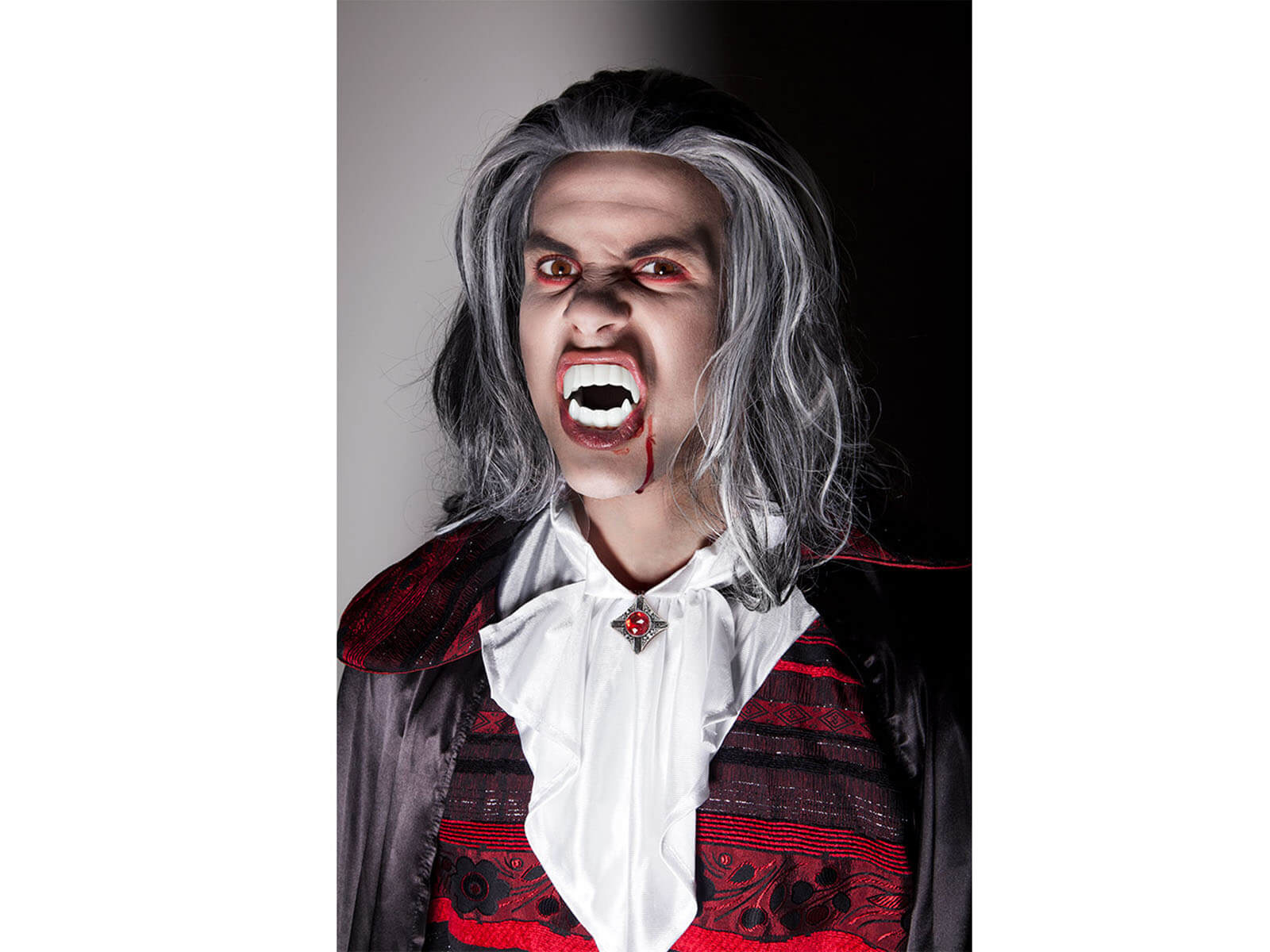 Użyj dołączonej krwi, aby dodać dodatkowego dramatyzmu do swojego mrocznego wyglądu. Łatwe w aplikacji i wygodne w noszeniu, nasze zęby wampira są doskonałym dodatkiem do Twojej charakteryzacji. Zaskocz przyjaciół autentycznym wampirem, który przemieni zabawę Halloweenową w niezapomniane przeżycie.