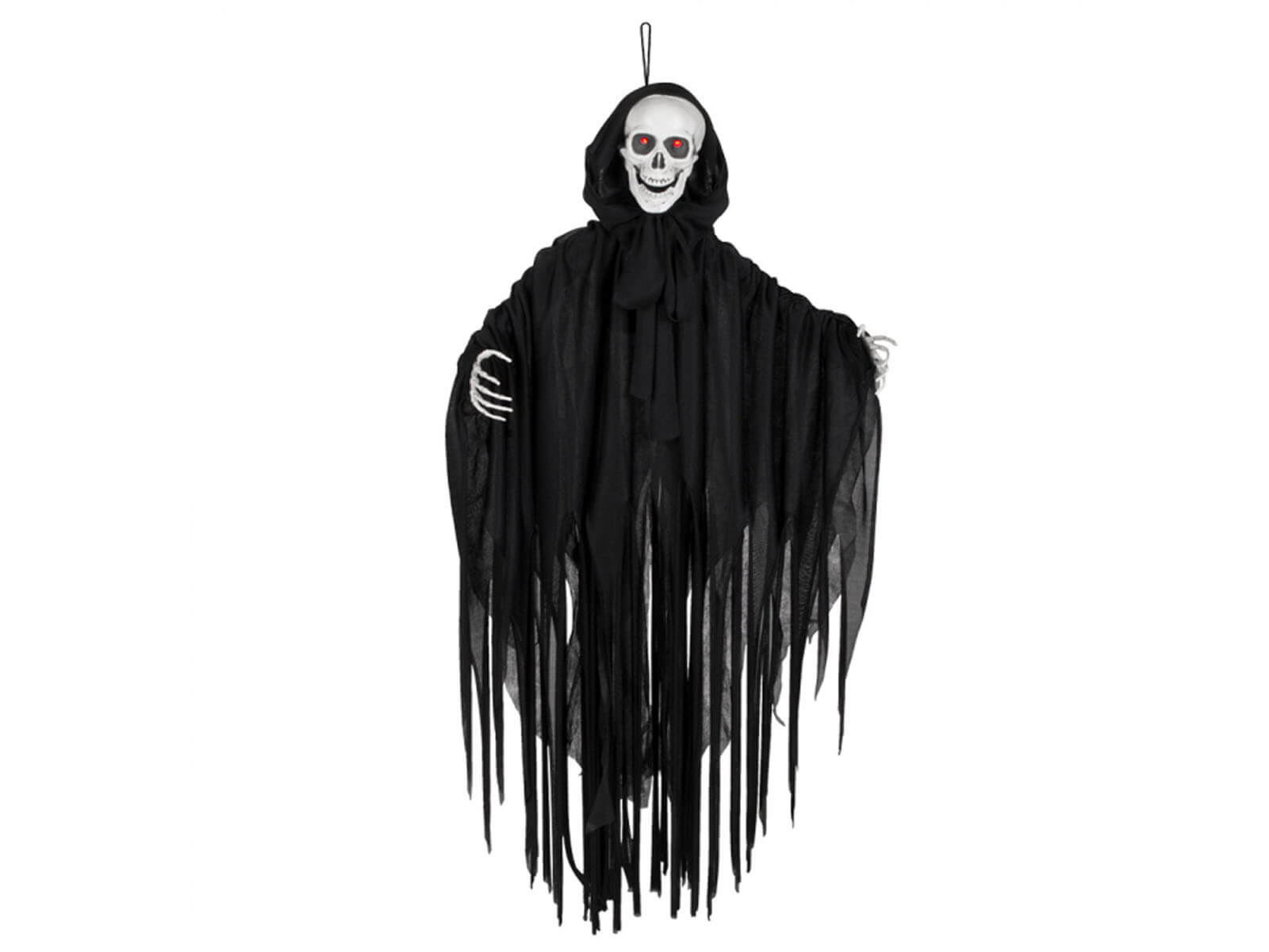 Przemień swoje pomieszczenia w prawdziwie straszne miejsce tego Halloween z naszą dekoracją wiszącą Mroczny Żniwiarz. Mocując go w odpowiednich miejscach, możesz zaskoczyć gości poruszającym się, świecącym i wydającym dźwięki Żniwiarzem, co z pewnością doda klimatu każdej horrorowej scenografii.
