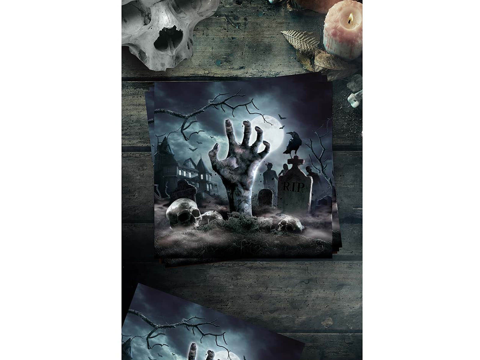 Podnieś poziom swojej dekoracji halloweenowej dzięki naszym jednorazowym serwetkom z wizerunkiem mrocznego cmentarza. Idealne do stworzenia niezapomnianej atmosfery podczas Halloween, urozmaicą każdą imprezę lub rodzinne spotkanie. Każda serwetka ma wymiary 33 cm x 33 cm po rozłożeniu, zapewniając dużą powierzchnię, idealną do użytku zarówno dla dzieci, jak i dorosłych.