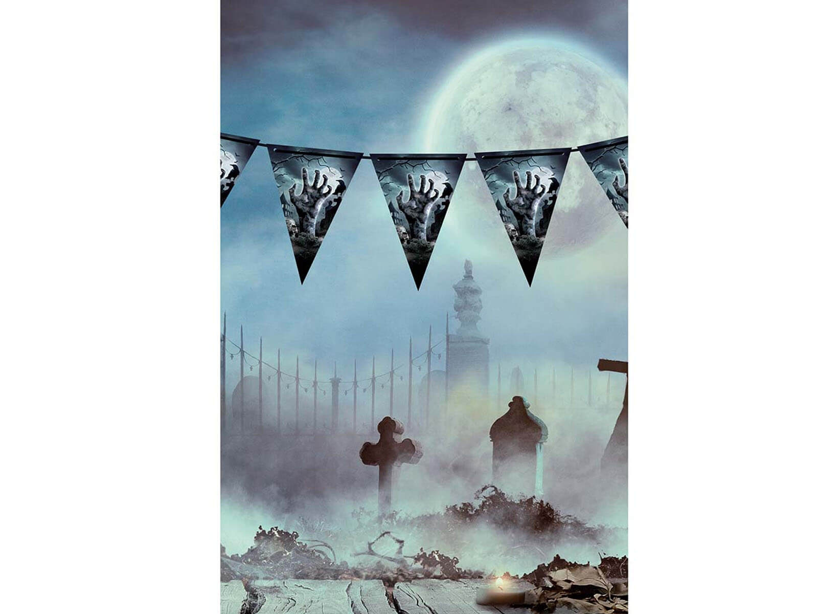 Przemień swoje przestrzenie w mroczną krainę nieumarłych z naszym Banerem "Flagi Zombie". To doskonała dekoracja na Halloween, która wprowadzi wszystkich gości w odpowiedni, upiorny nastrój. Baner wykonany jest z folii, co gwarantuje trwałość oraz łatwość w zawieszaniu. Każda flaga zdobiona jest nadrukiem mrocznego cmentarza, dodając tego niezbędnego strachu każdej Halloweenowej dekoracji.