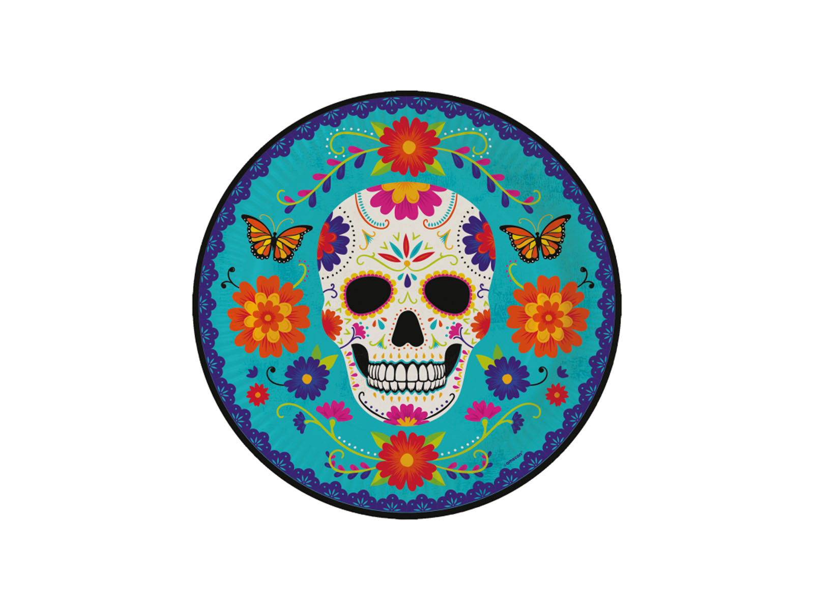 Talerzyki papierowe na Halloween Meksykańska Czacha - 23 cm - 8 szt.