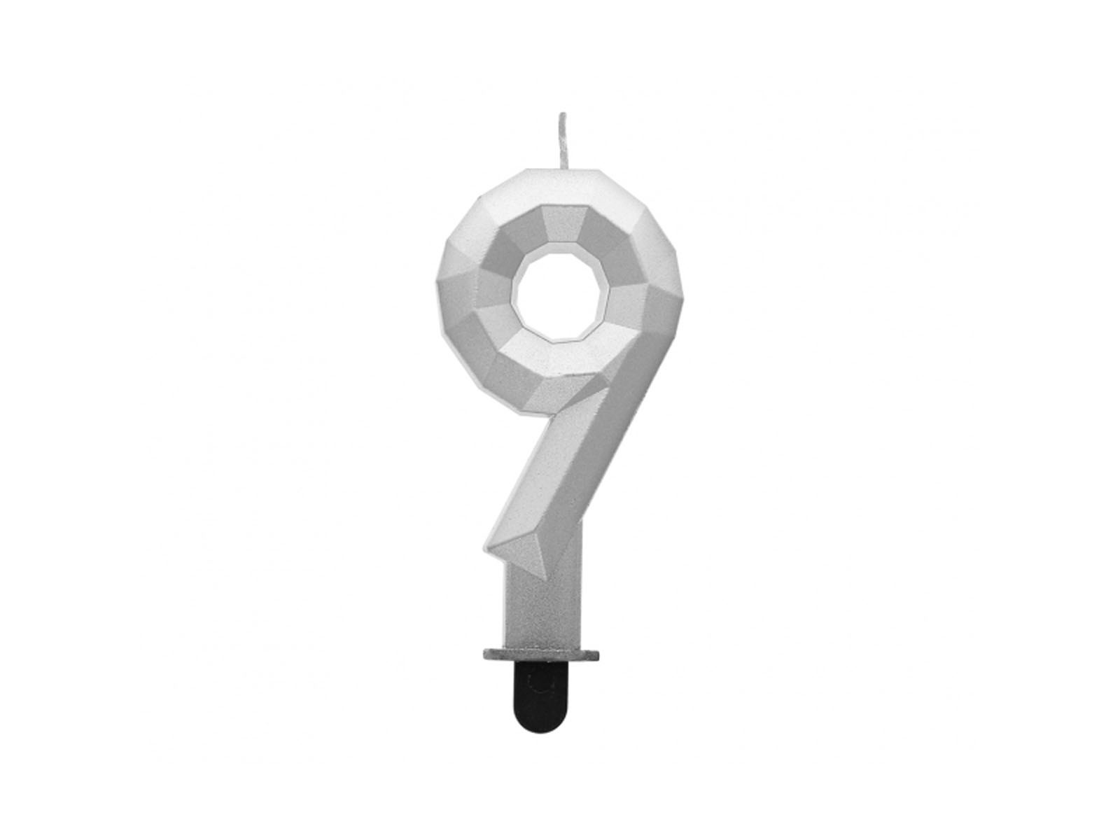 Świeczka cyferka diament srebrna - 9 - dziewięć