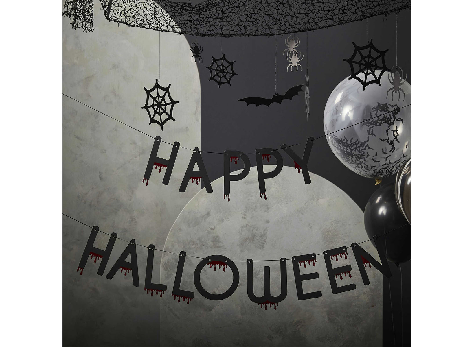 Przemień swoje pomieszczenie w mroczną krainę grozy z naszym banerem "Krwawy Happy Halloween". Idealny dodatek na Halloweenowe przyjęcie, który nada odpowiedni nastrój każdemu wnętrzu. Baner wykonany z wysokiej jakości papieru ozdobiony jest efektownymi kroplami krwi, co czyni go nie tylko dekoracją, ale prawdziwym elementem klimatycznym.