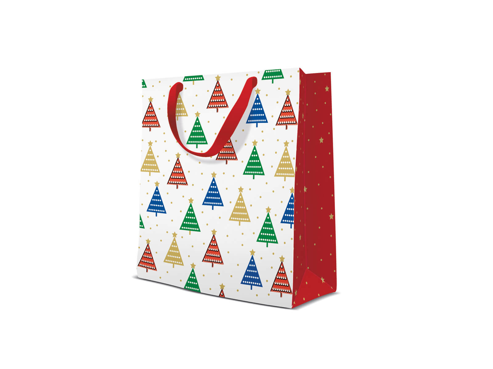 Torebka prezentowa Kolorowe choinki na Boże Narodzenie średnia - 1 szt.
