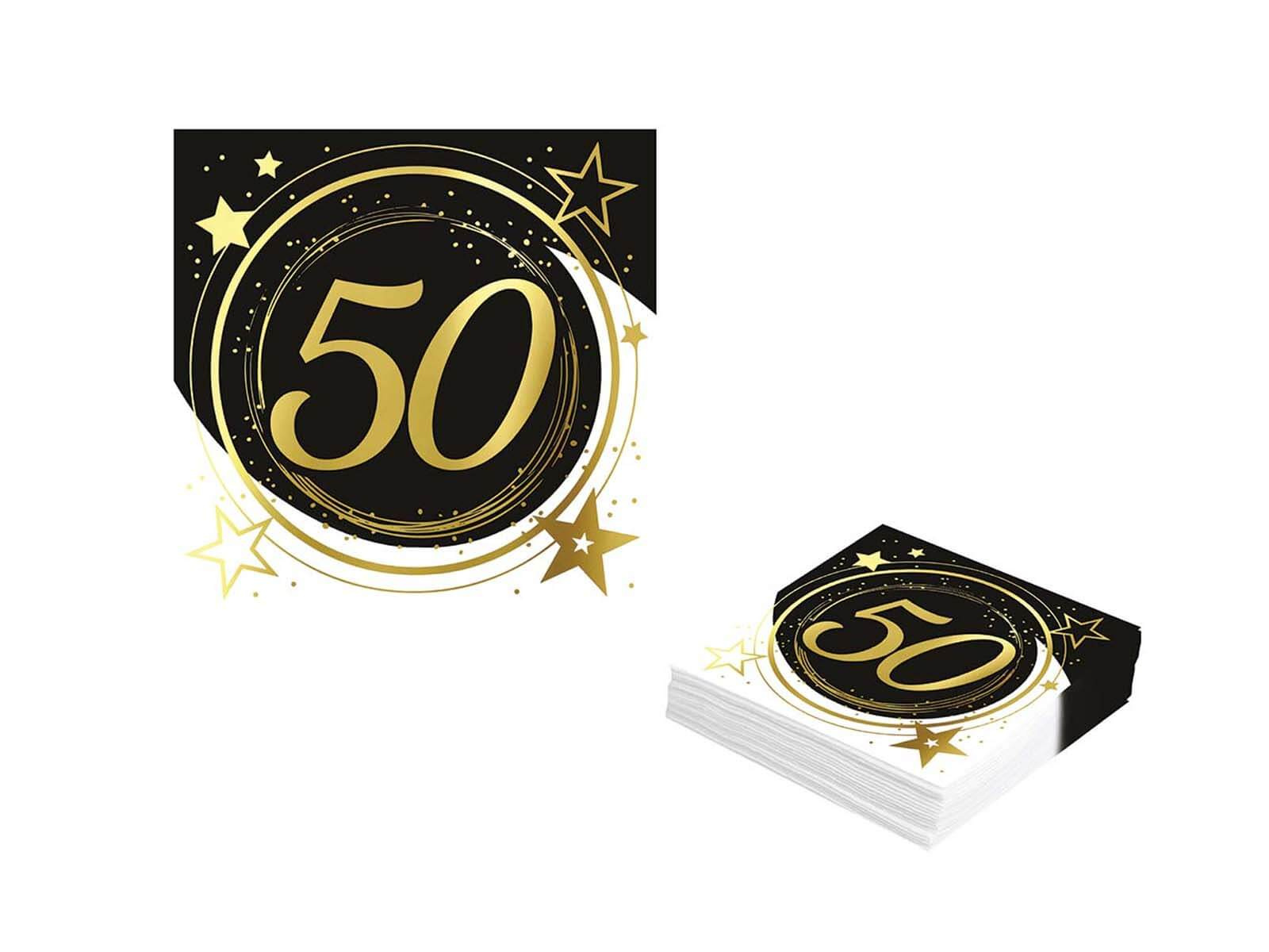 Serwetki na pięćdziesiąte urodziny czarne - 33 cm - 12 szt.