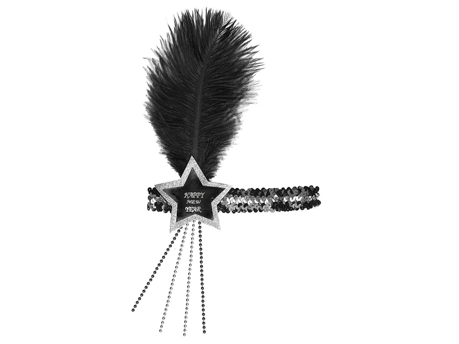 Opaska z piórem Happy New Year czarno-srebrna - 1 szt.