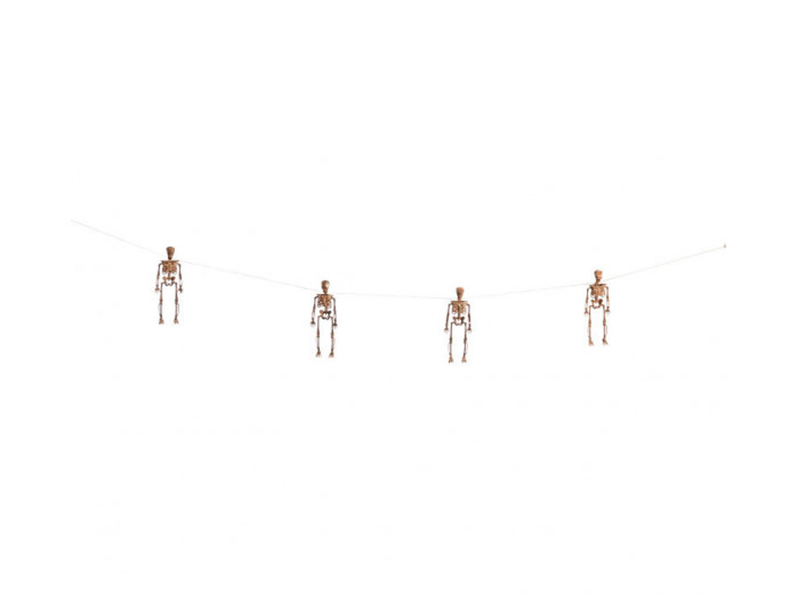 Stwórz niezapomnianą atmosferę strachu i zabawy podczas najstraszniejszej nocy w roku z naszą girlandą na Halloween! Każdy z czterech plastikowych szkieletów ma wysokość 14 cm i jest umieszczony na girlandzie o długości 105 cm. Idealna dekoracja na Halloween, aby zaimponować Twoim gościom i stworzyć odpowiedni klimat dla wszystkich przebierańców.