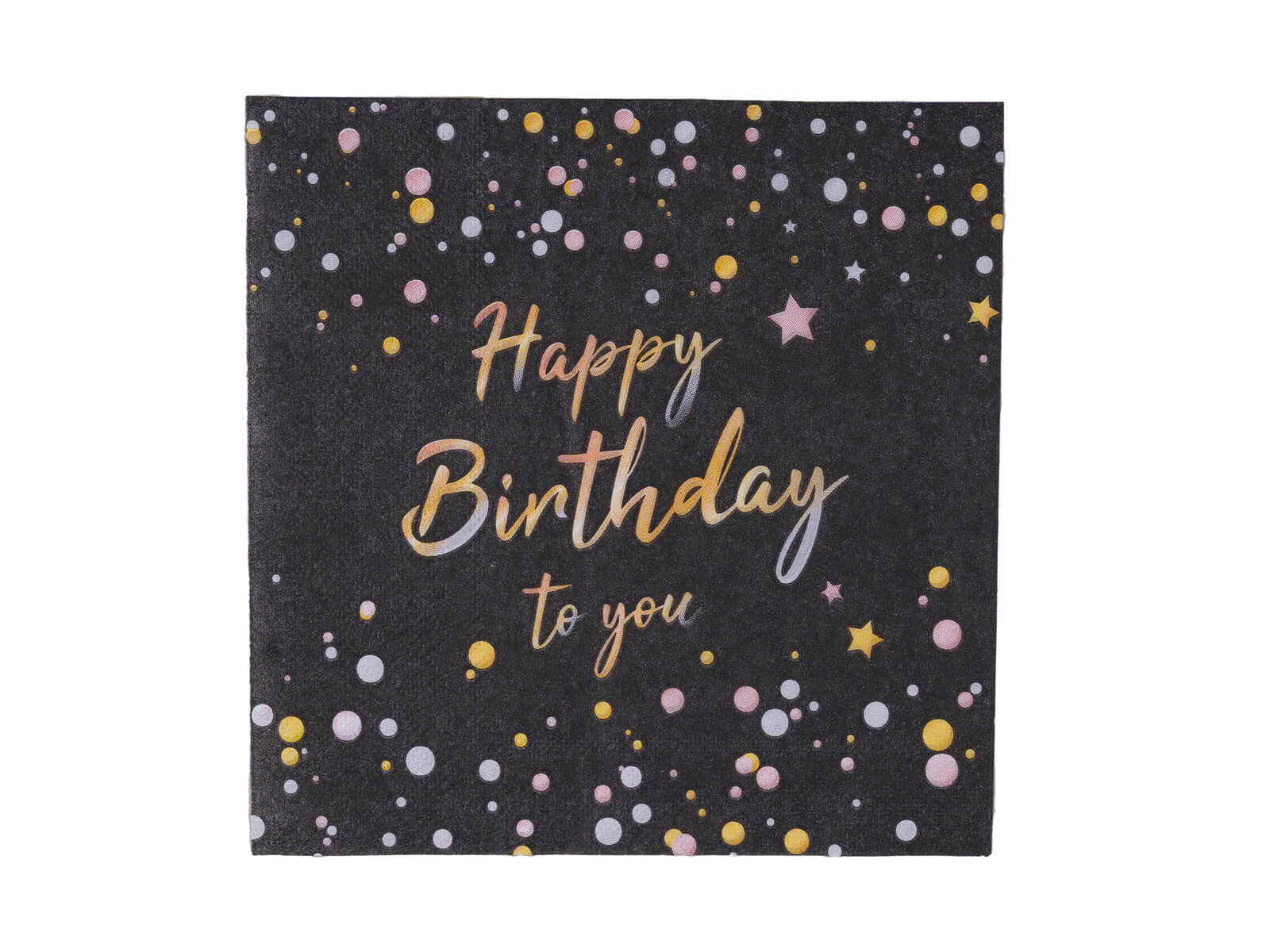 Serwetki urodzinowe Happy Birthday to you czarne - 33 cm - 20 szt.