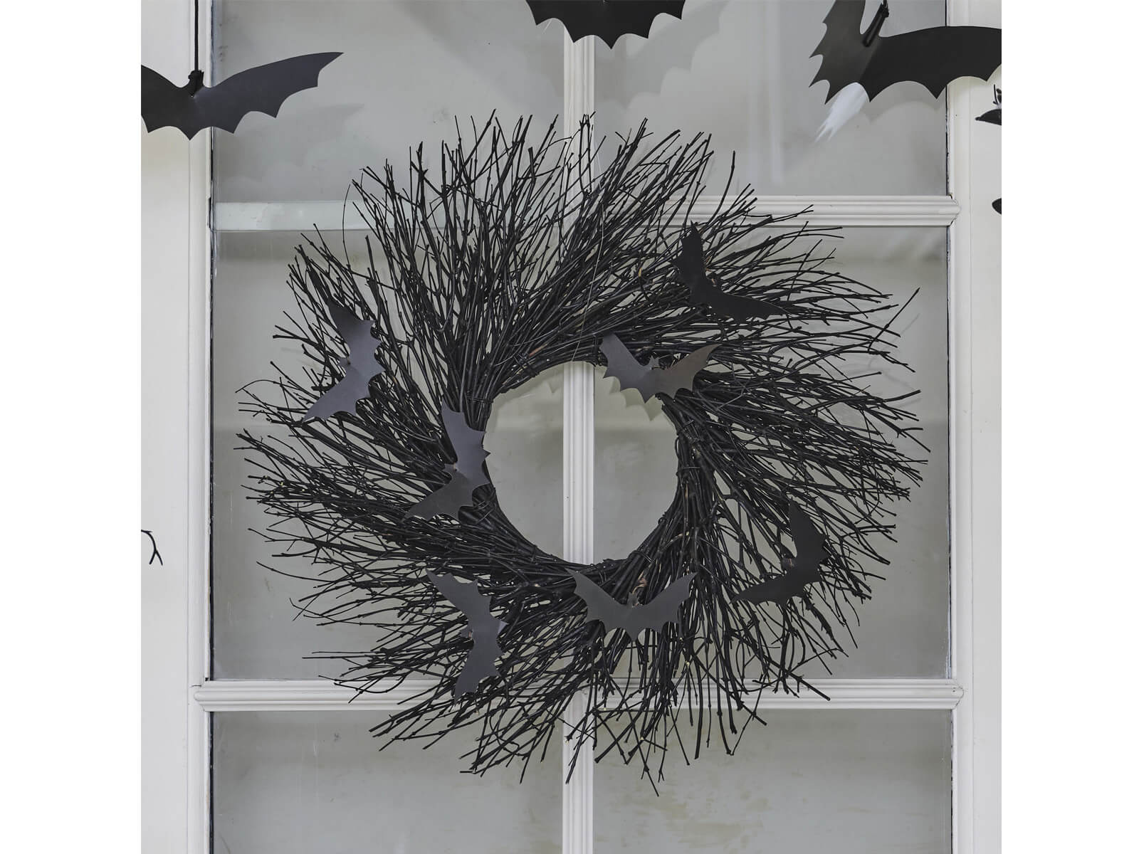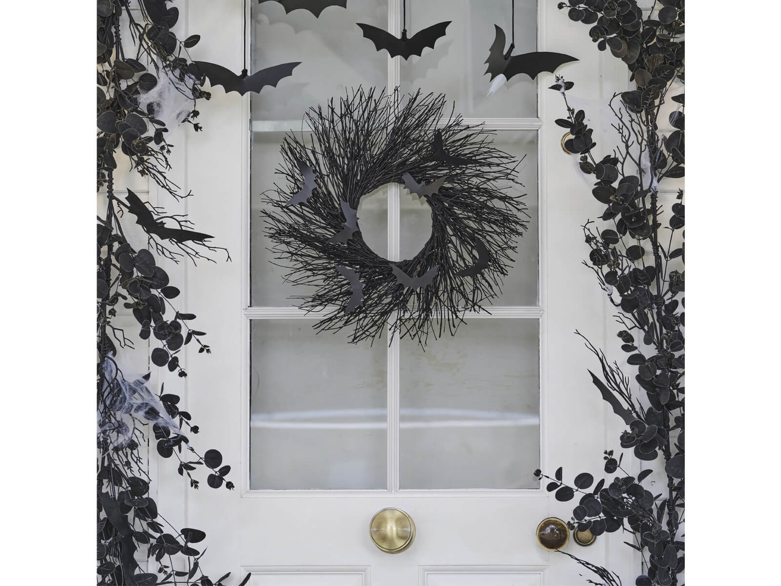 Odkryj idealny element dekoracyjny na Halloween! Nasz Wieniec Halloweenowy wykonany z gałązek, ozdobiony papierowymi nietoperzami, to doskonały wybór na tę wyjątkową noc. Wieniec ma średnicę 45 cm, co czyni go widocznym i atrakcyjnym dodatkiem do każdej przestrzeni, zarówno wewnętrznej, jak i zewnętrznej.