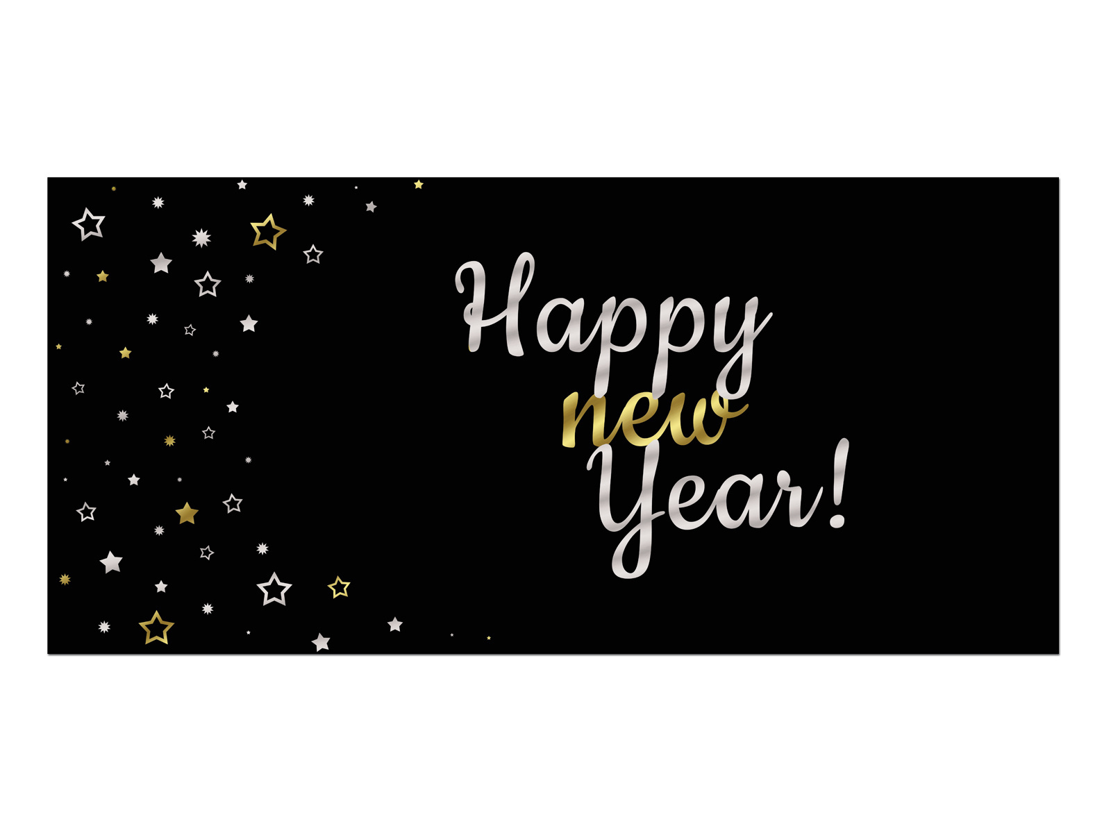 Plakat Happy New Year Srebrne Gwiazdki - 70x33 cm