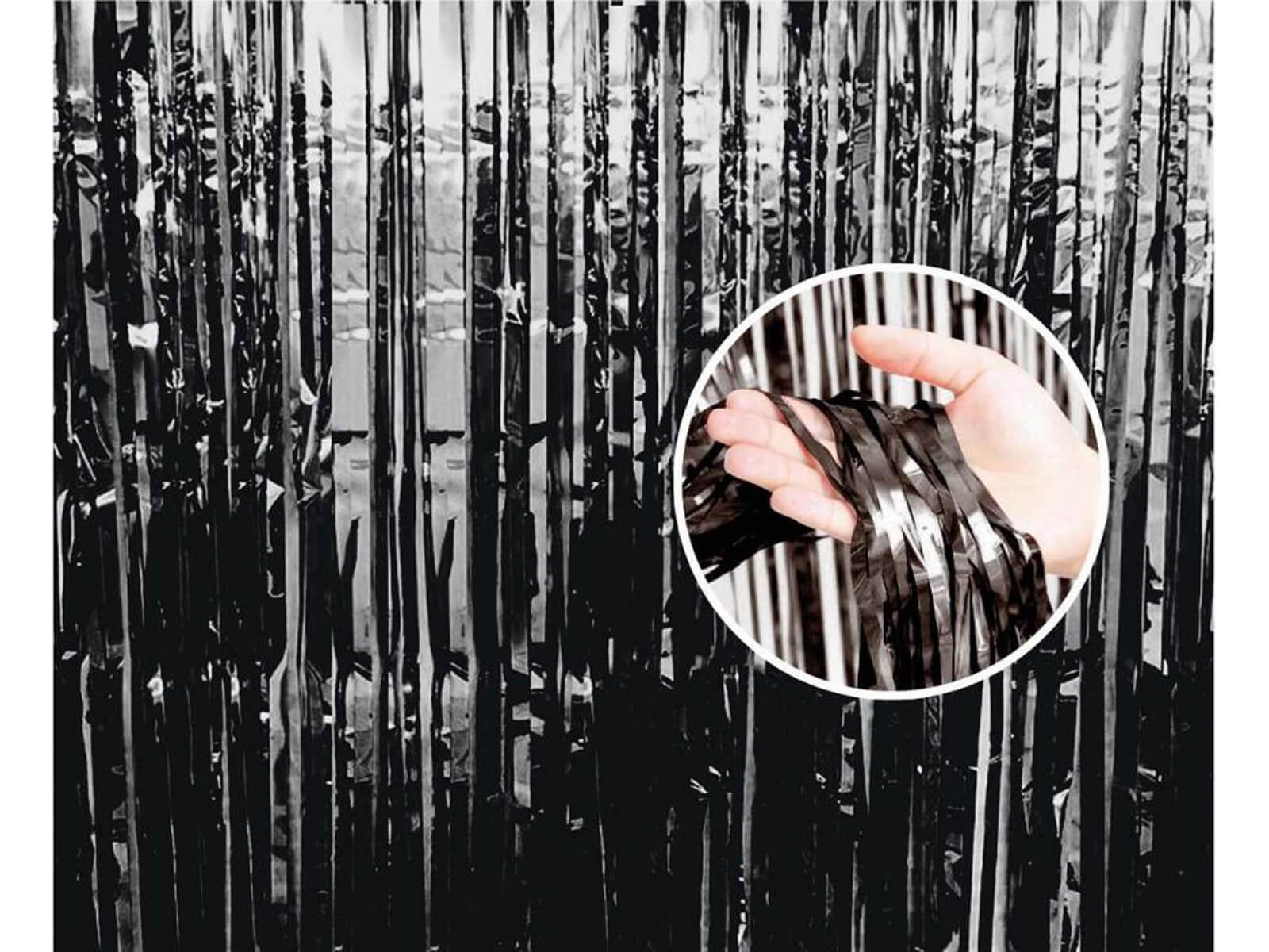 Zapraszamy do odkrycia naszej niezwykłej propozycji - Kurtyna metaliczna czarna na drzwi! Oto dekoracja wisząca, która wprowadzi wyjątkowy klimat i styl do Twojego wnętrza, idealna na Halloween czy inne okazje. Wykonana z metalizowanego materiału w eleganckim czarnym odcieniu, doda szyku i tajemniczości każdemu pomieszczeniu.