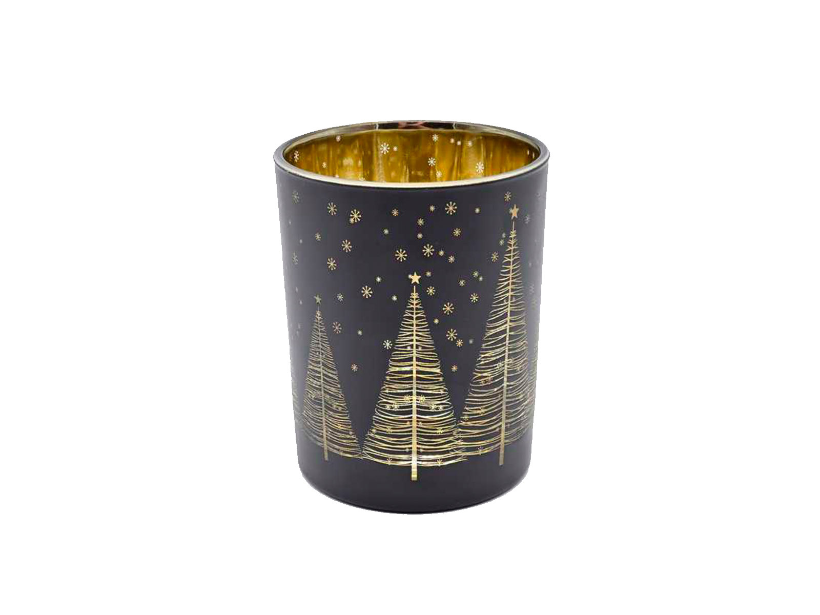 Odkryj magię świątecznych dekoracji z naszym ekskluzywnym szklanym świecznikiem złotym Choinki. Ten piękny lampion w kolorze złoto-czarnym, zdobiony motywem choinek, stworzy wyjątkową atmosferę podczas Bożego Narodzenia. Idealnie nadaje się na stół jako centralny element dekoracyjny, wprowadzając świąteczny nastrój do Twojego domu.
