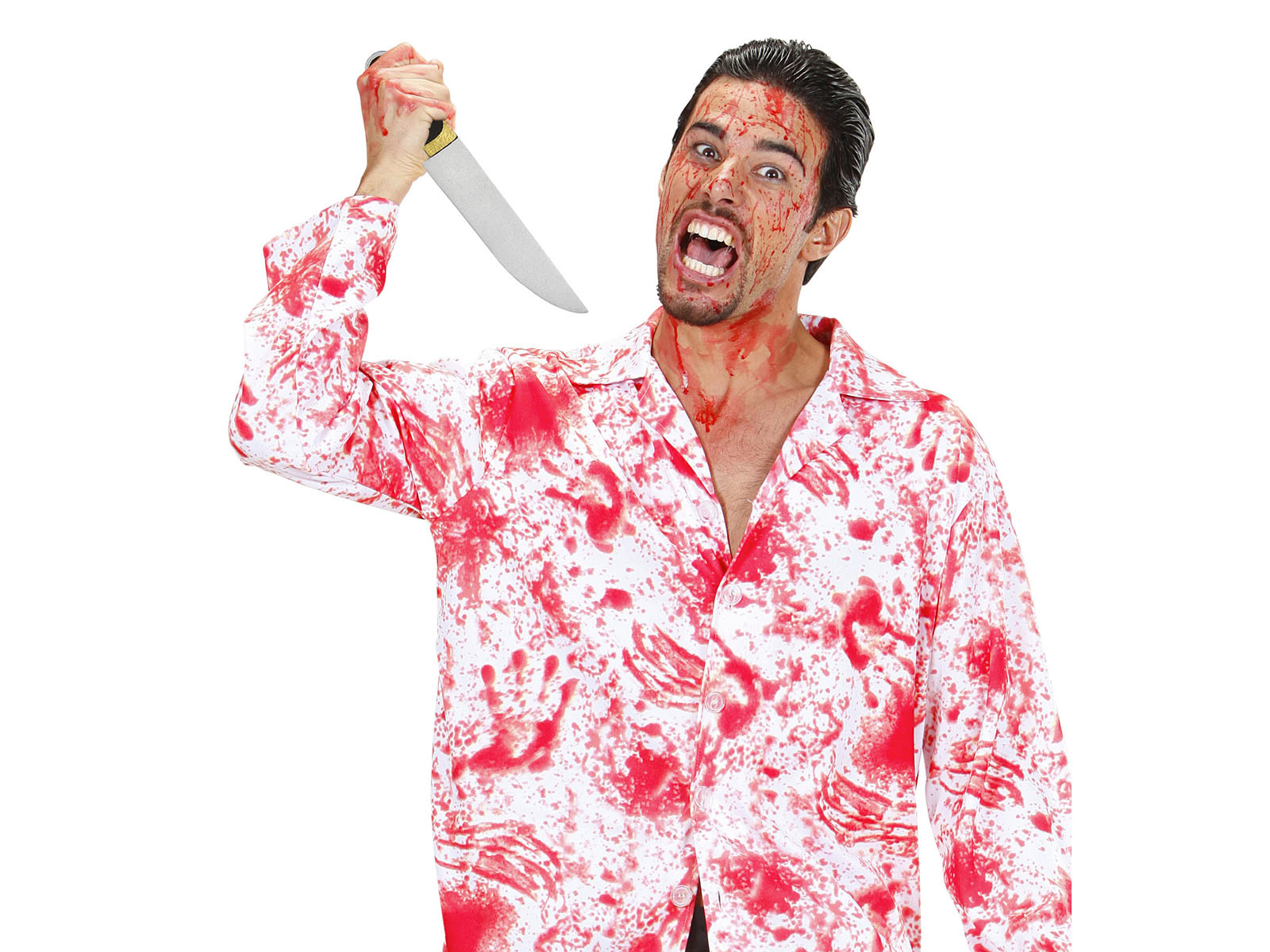 Długość noża wynosi 34 cm, dzięki czemu jest odpowiednio duży, aby być zauważalnym, ale i wygodnym w utrzymaniu. Jest idealny do scen teatralnych, zabaw z dziećmi czy jako element dekoracyjny na Halloweenową imprezę.