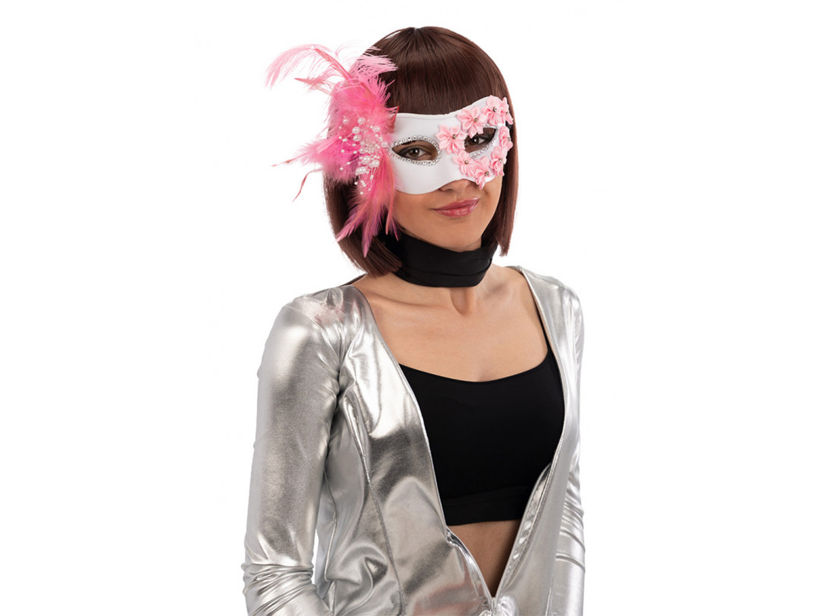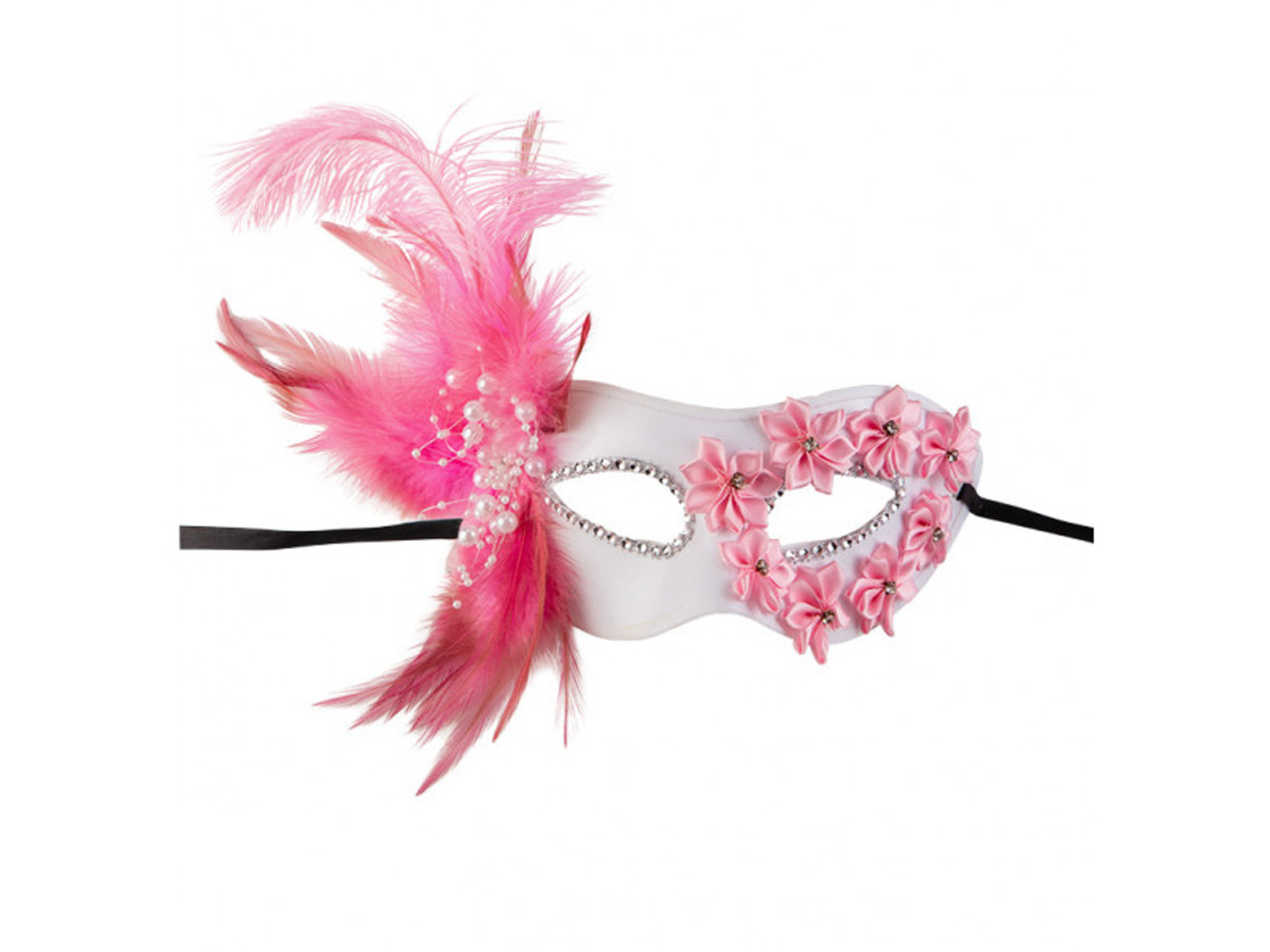 Maska karnawałowa biała z różami i piórami