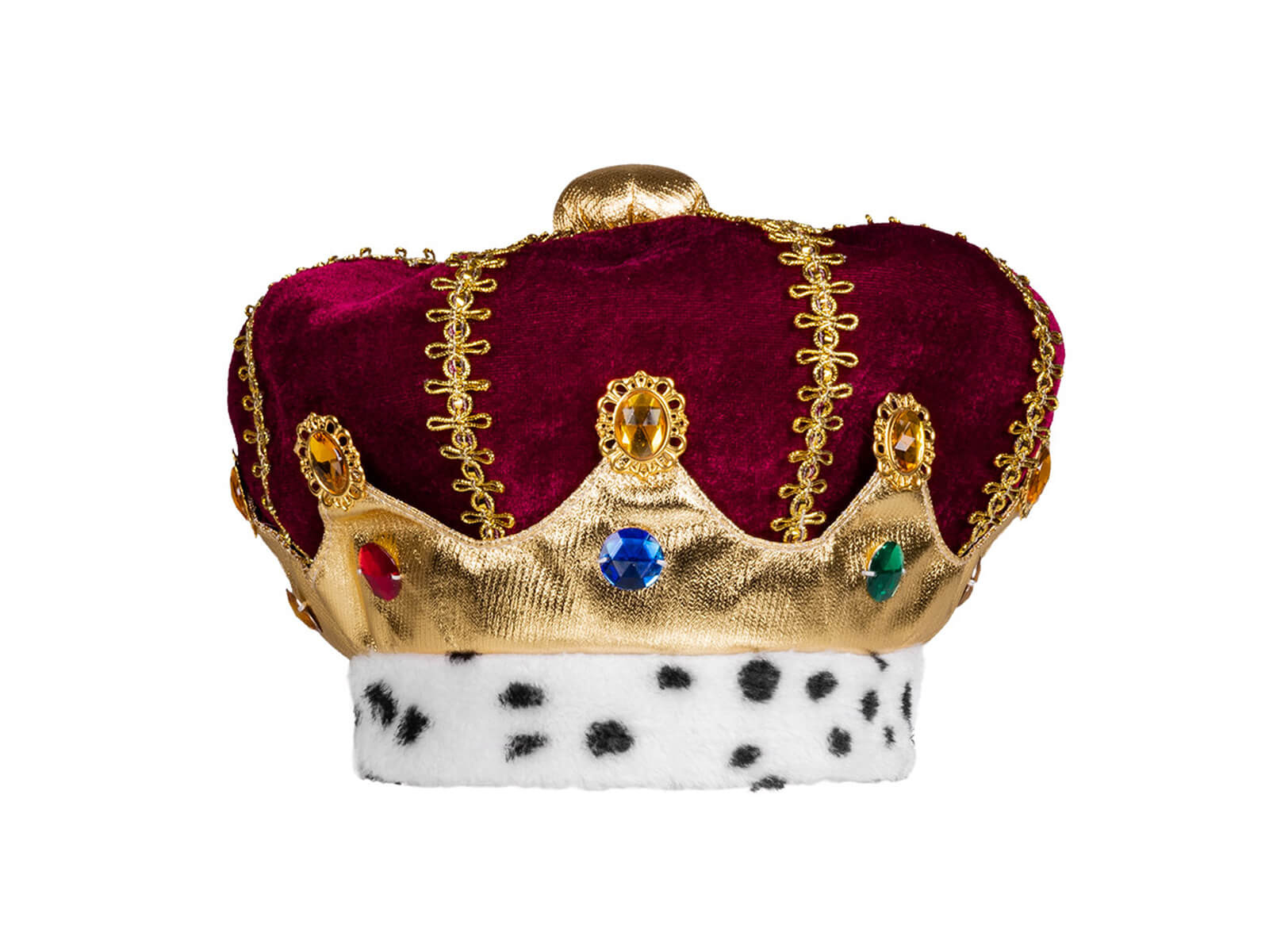 Przekształć swoje dziecko w majestatycznego monarchę z naszą Czapka króla bordowa dla dziecka. Ta elegancka czapka została wykonana z dbałością o detale, na które składają się złote zdobienia i kolorowe kamienie, dodające królewskiego splendoru.