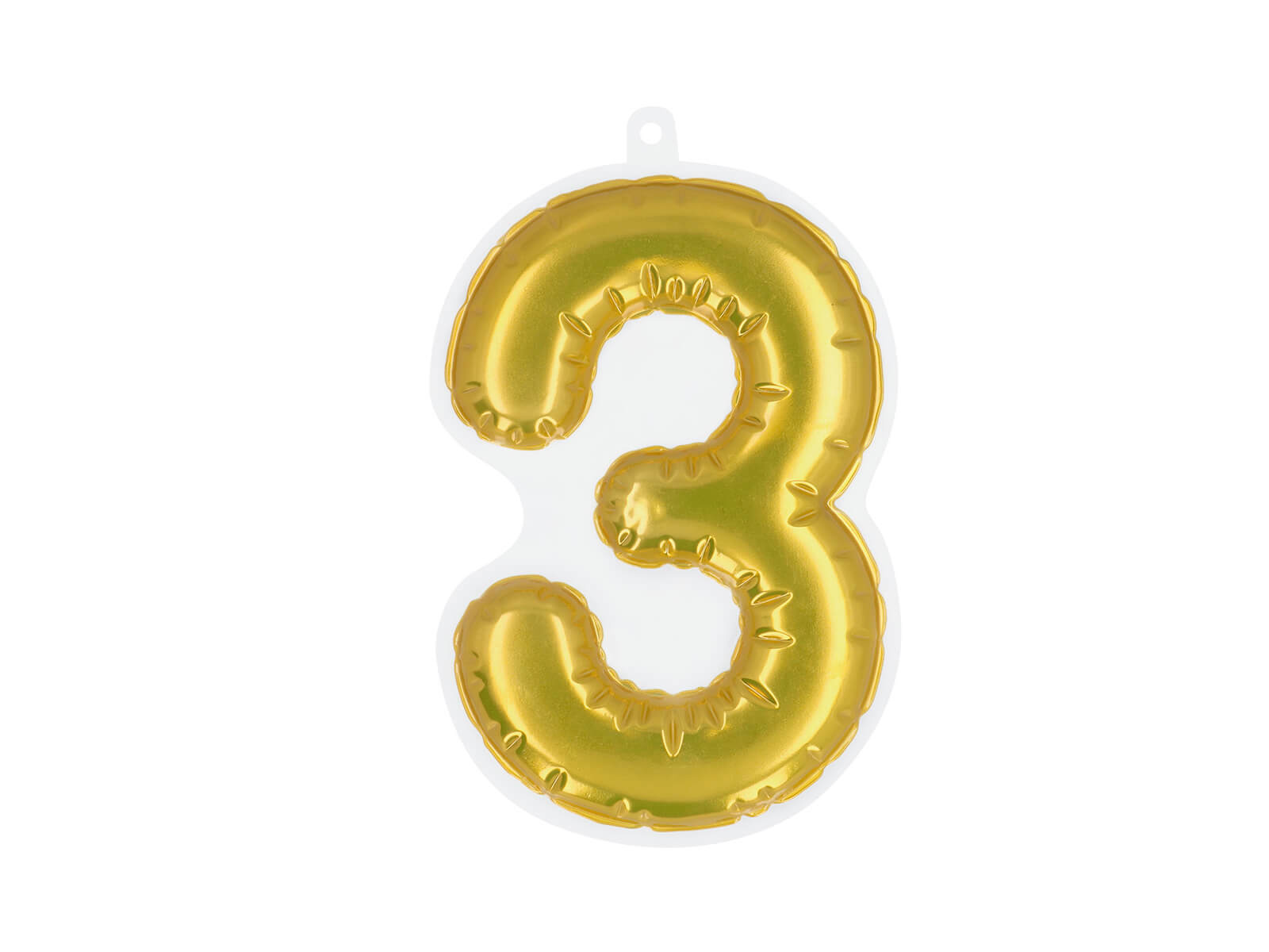Dekoracja samoprzylepna cyfra trzy złota - 1 szt.