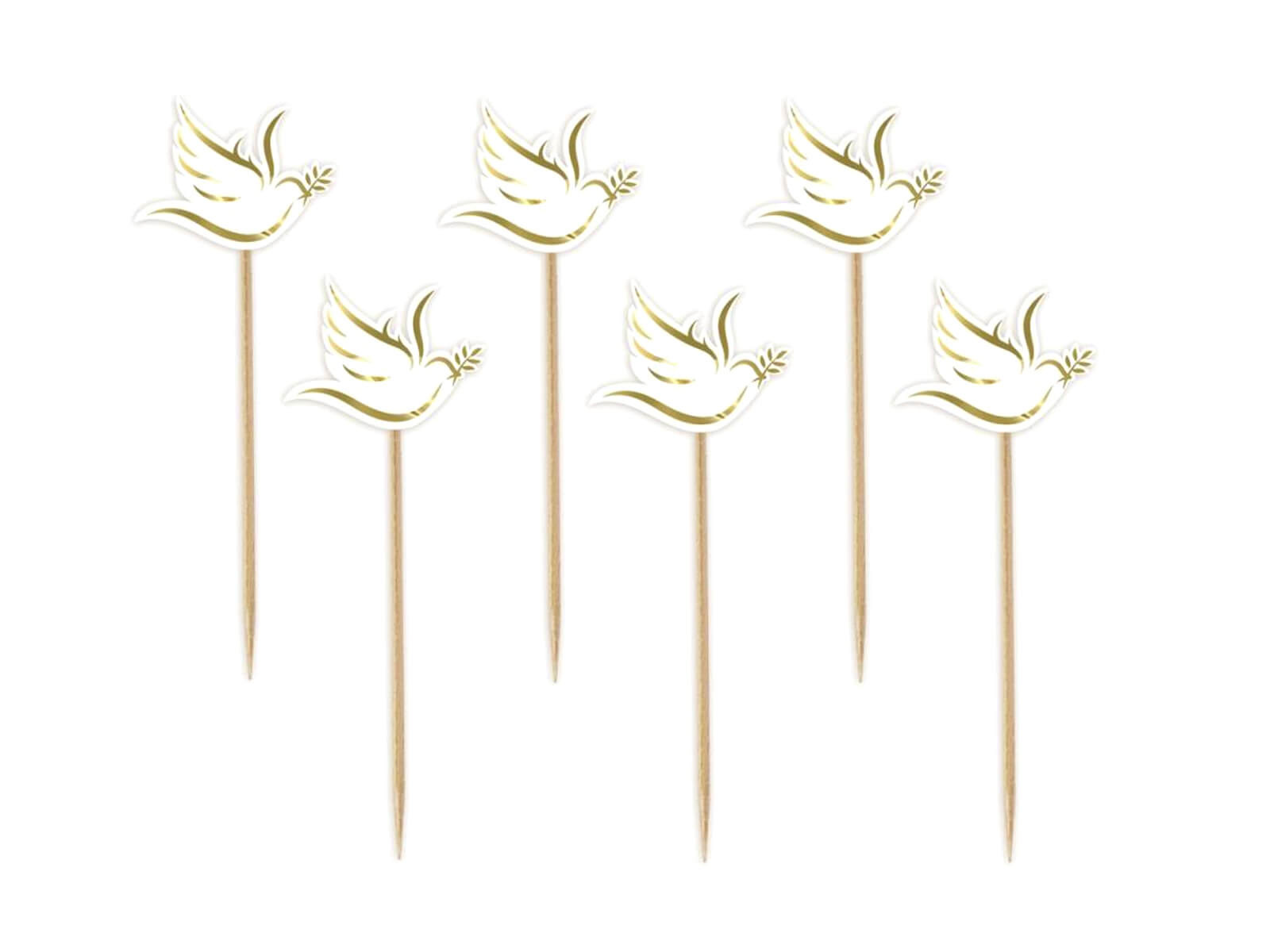 Pikery na babeczki Złote gołąbki na I Komunię Świętą - 6 szt.