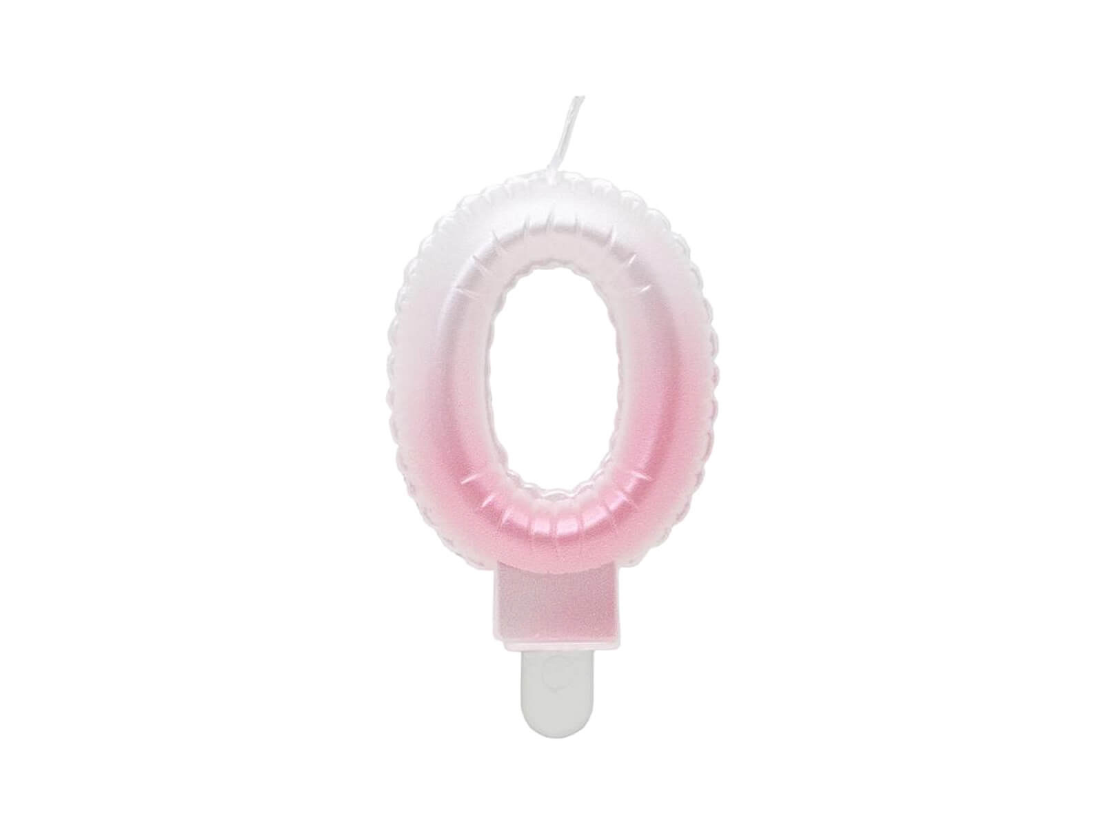 Świeczka cyferka perłowa biało-różowa - 0 - zero