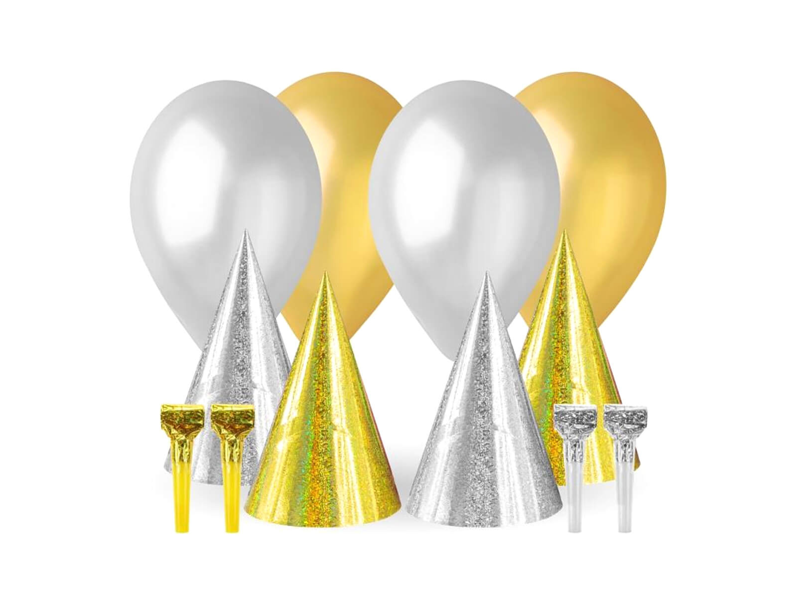 Szukasz idealnych akcesoriów, które dodadzą blasku Twoim uroczystościom? Nasz "Zestaw dekoracji złoto-srebrny - 12 elementów" to doskonały wybór na karnawał, Sylwestra, urodziny lub jakąkolwiek inną okazję dla czterech osób. Ten elegancki zestaw zawiera wszystko, co potrzebne, aby stworzyć niezapomnianą atmosferę i dodać trochę magii każdej celebracji.